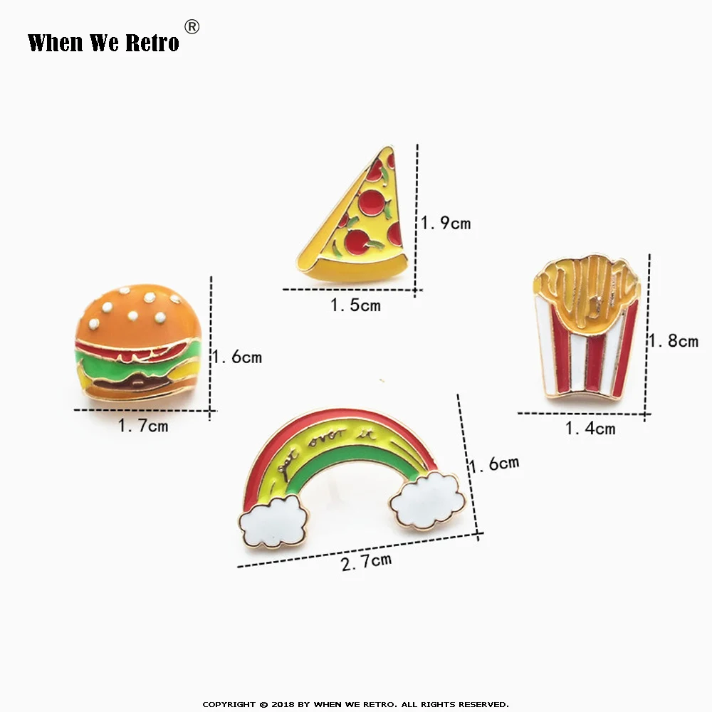Когда мы Ретро 4 стиля закуска брошь бургер пицца картофель фри Радуга Эмаль шпильки еда QY0464 Брошь для женщин ювелирные изделия