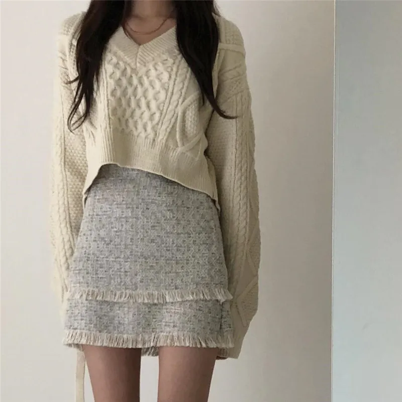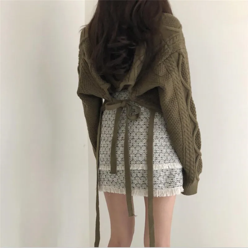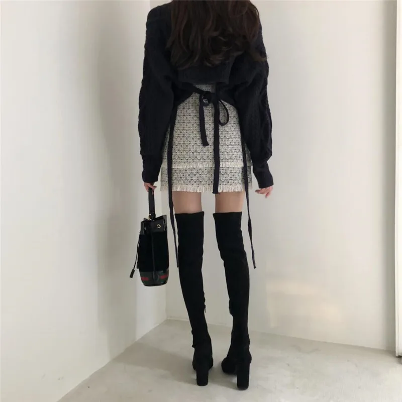 Однотонная Свободная юбка трапециевидной формы и короткие трикотажные пуловеры с открытой спиной