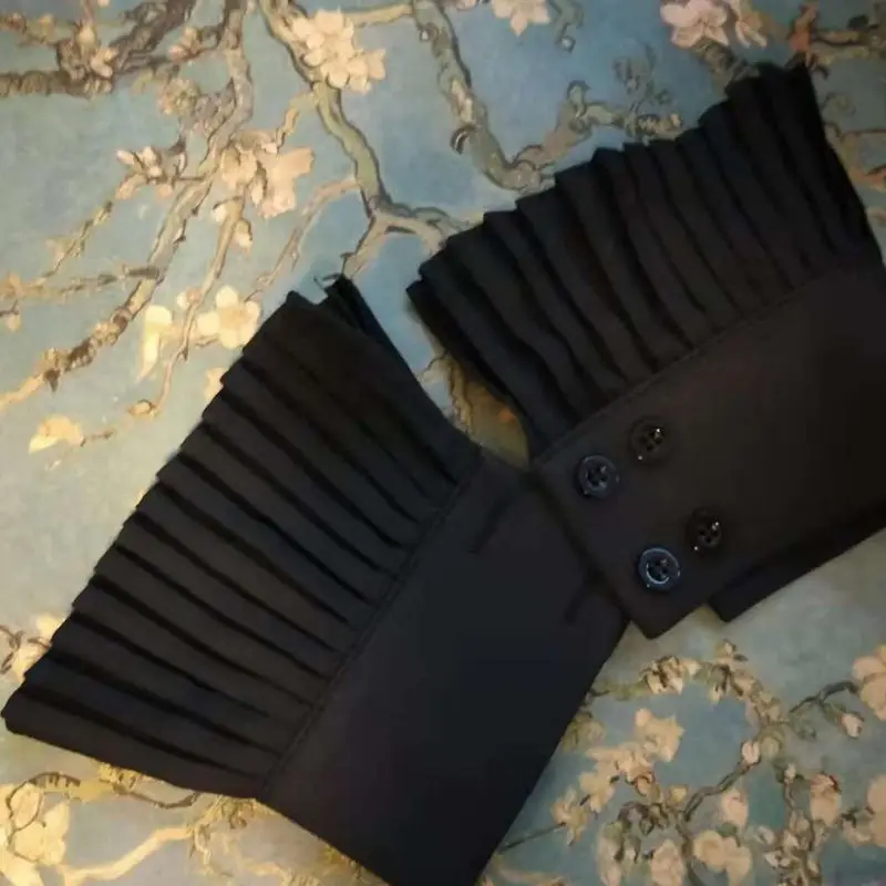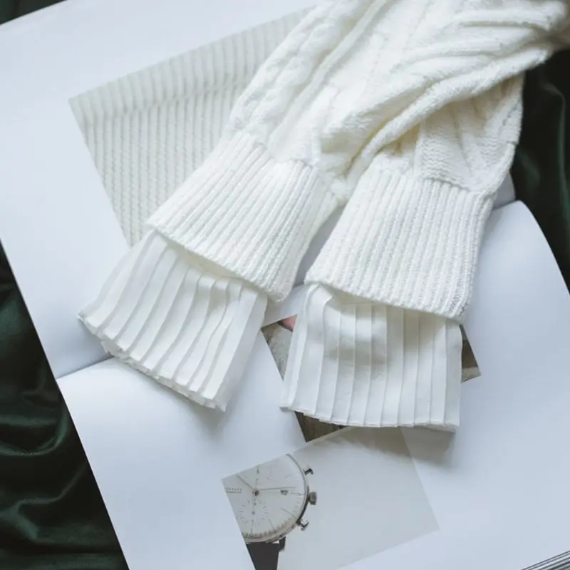 Корейский ретро плиссированный свитер с расклешенными рукавами и накладными манжетами, Однотонный свитер, декоративный съемный браслет, аксессуар для одежды
