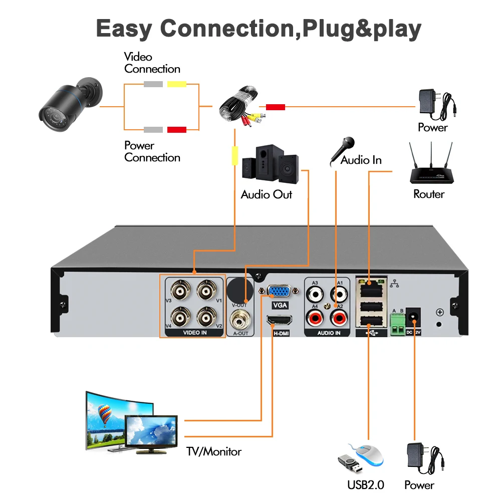 (5) поддерживает 2CH 1080 P AHD + 2CH 1080 P ip-камера, 2CH воспроизведение