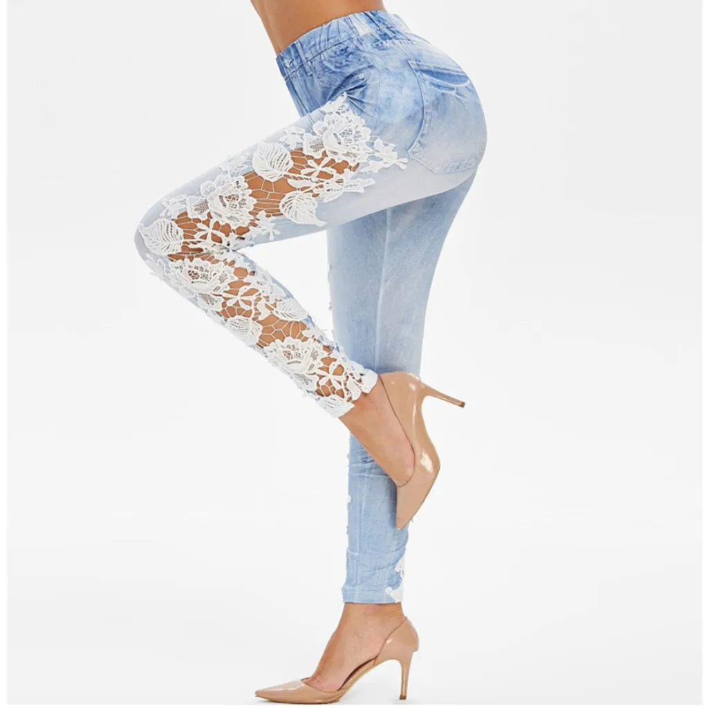 Женские рваные джинсы с высокой талией, кружевные брюки на пуговицах