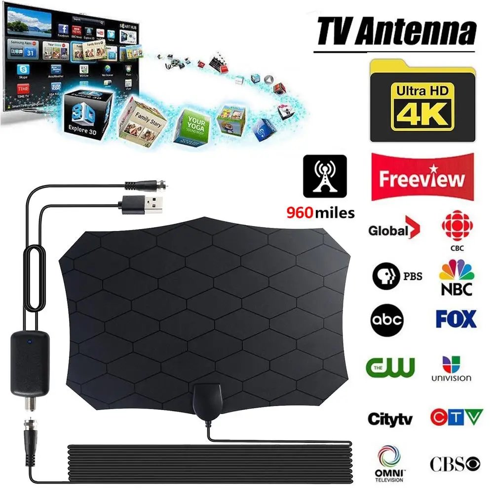 Новейшая 4K 25DB с высоким коэффициентом усиления HD TV DTV коробка цифров ТВ антенны EU Plug 960 миль усилитель активная комнатная антенна HD плоский дизайн DVB-T2