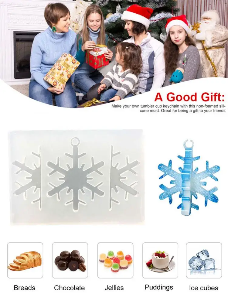 1. Размер изделия: общий размер составляет около 10*7*1 см/3,94*2,76*0,39 дюйма, поэтому форма легко переносится.1 * силиконовая форма со снежинками