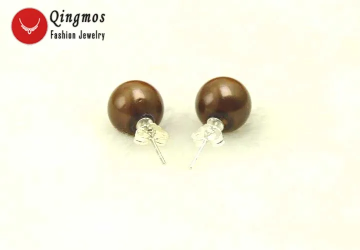 Qingmos трендовые жемчужные серьги цвета шампанского с морской раковиной для женщин с 10 мм круглой морской раковиной жемчужные серебряные серьги-гвоздики ювелирные изделия Arete ear152