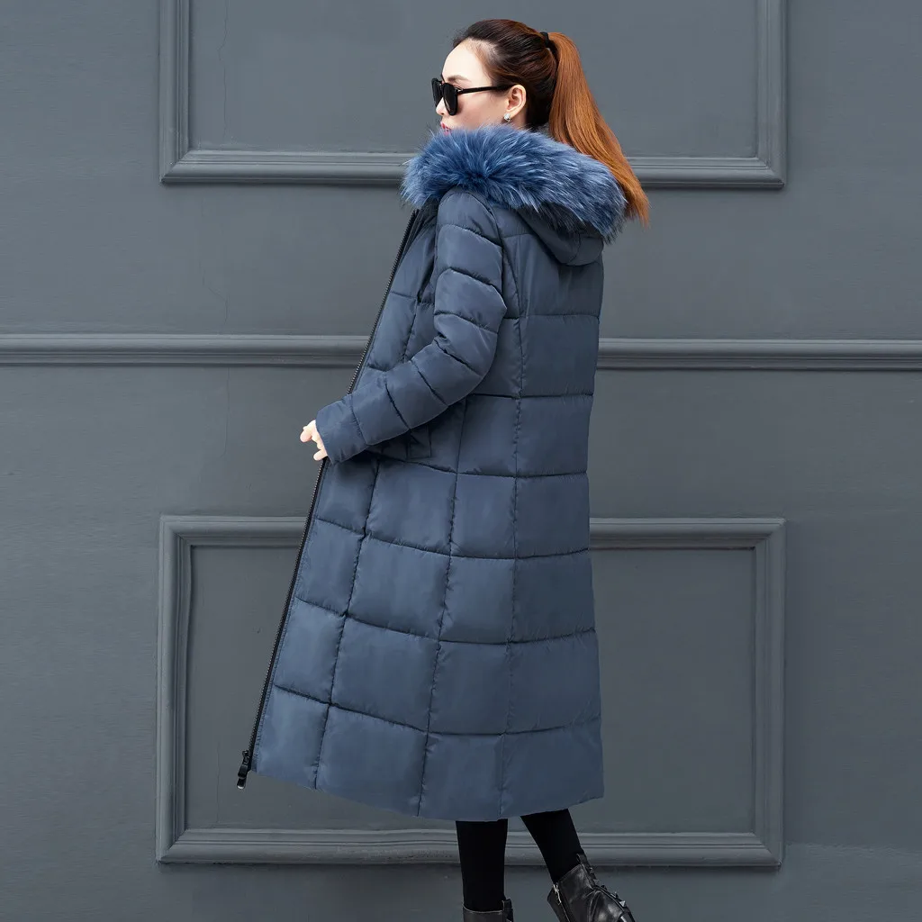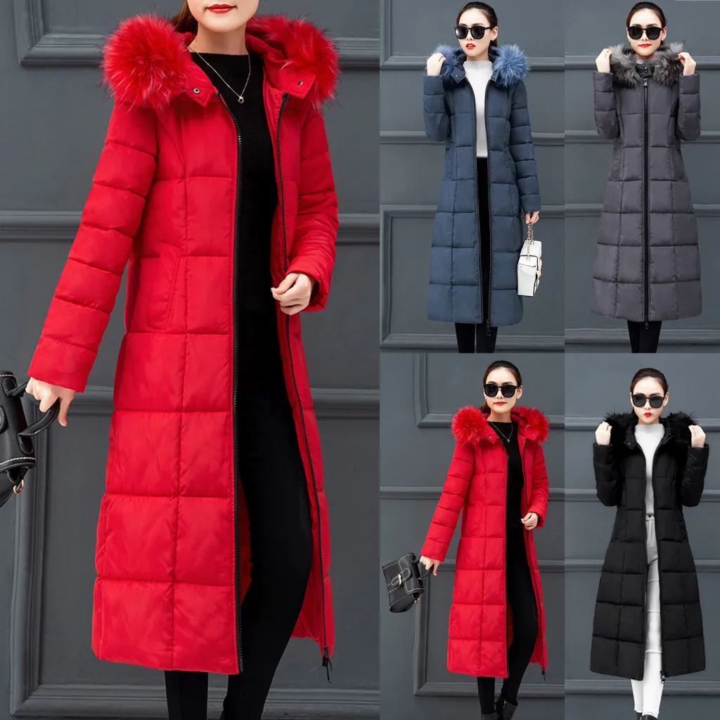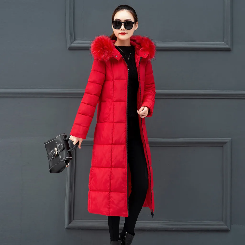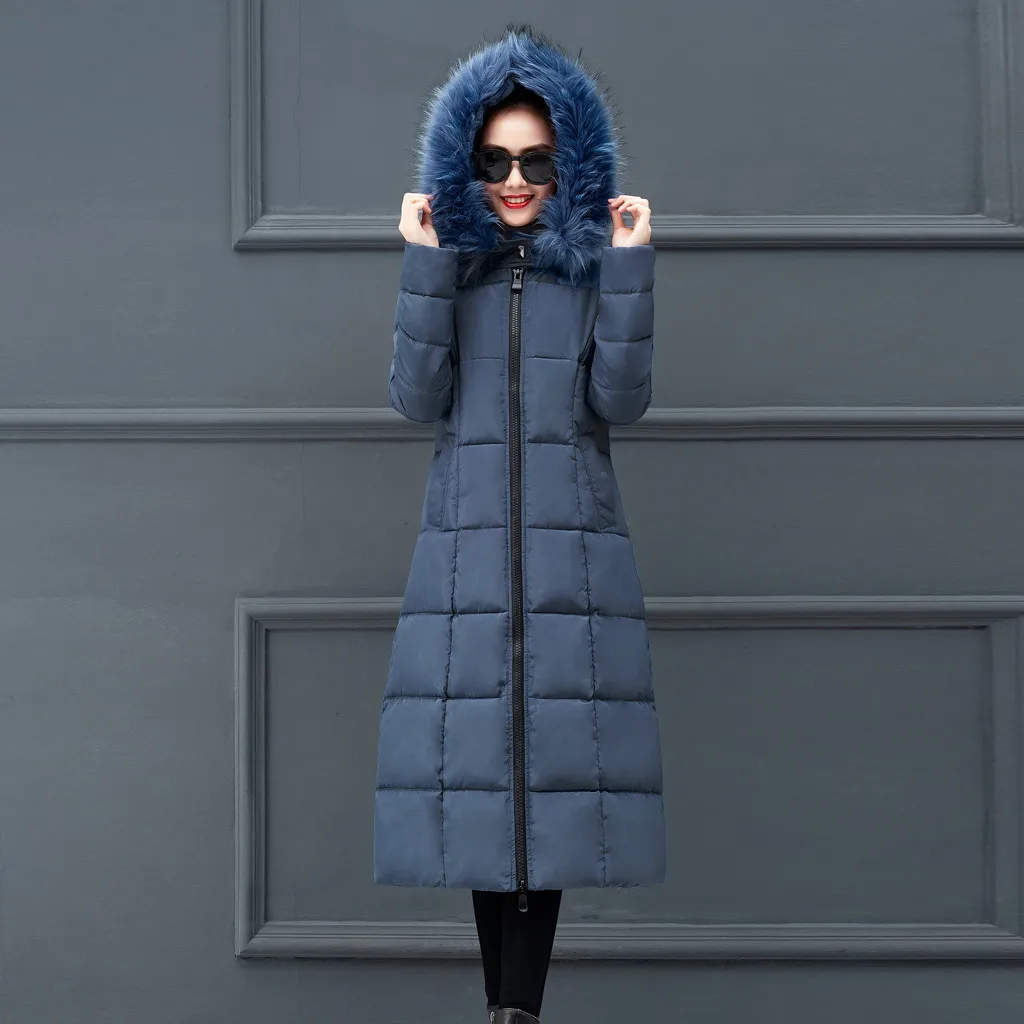 Женская верхняя одежда, пальто с меховым капюшоном, Длинные куртки на молнии с хлопковой подкладкой, пальто с карманами