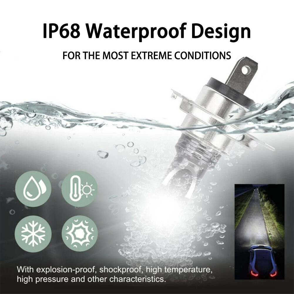 2. Холодный белый 6000K 24000лм 110 Вт в комплекте (12000лм/Лампа, 55 Вт/лампа), более мощный, чем галогенные, выход может соответствовать или превышать те из aftermarket 55 Вт HID комплекты, экономит больше энергии.