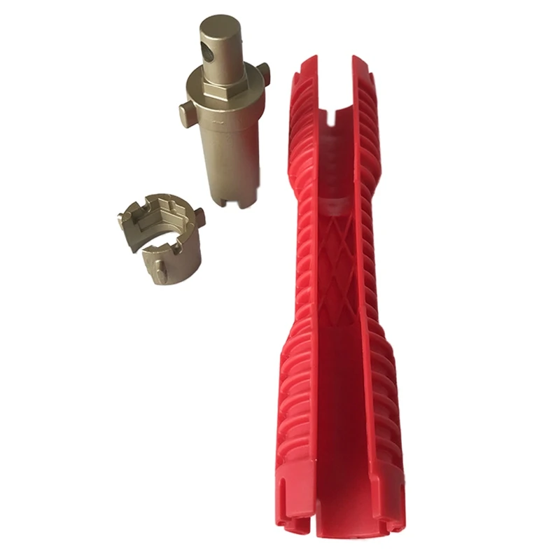 Экстра-длинная конструкция позволяет поворачивать труднодоступные монтажные гайки на краны, опрыскиватели и шаровые краны.