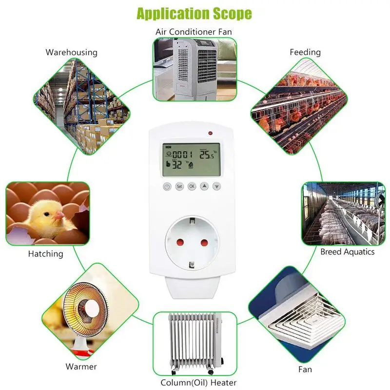 Устройство контроля температуры для контроля умной температуры. С широким и четким ЖК-экраном, прост в использовании и легко читается даже в темноте.