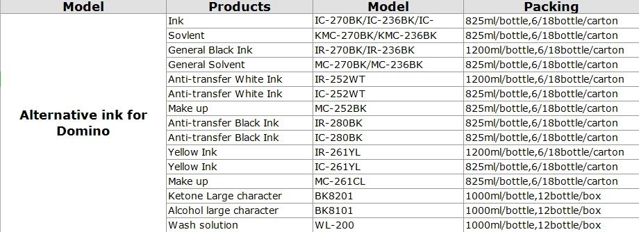Одна бутылка 1200 мл альтернатива черные чернила для принтеров домино IR-270BK/236BK/291BK