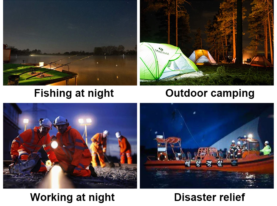 Зарядка от USB: встроенный литий-ионный аккумулятор с оборудованным usb-кабелем обеспечивает быструю и удобную зарядку. Водонепроницаемость: Рейтинг IP44, отсутствие вреда от брызг воды со всех сторон, подходит для внутренней или наружной среды. Внешний аккумулятор: служит удобным внешним аккумулятором для зарядки вашего телефона и других устройств в чрезвычайной ситуации. Широкое использование: идеально подходит для активного отдыха, таких как работа, туризм, кемпинг, охота, исследование, поиск и так далее.