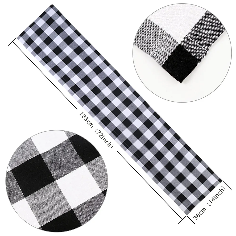 1 шт. Мешковина настольный бегун Цвет: черно-белый + лен Размер бегуна: 14*72 дюйма/36*183 см Бамбуковые салфетки Размеры: 18,1*11,8 дюймов (46*30 дюймов) Материал: хлопок и мешковина