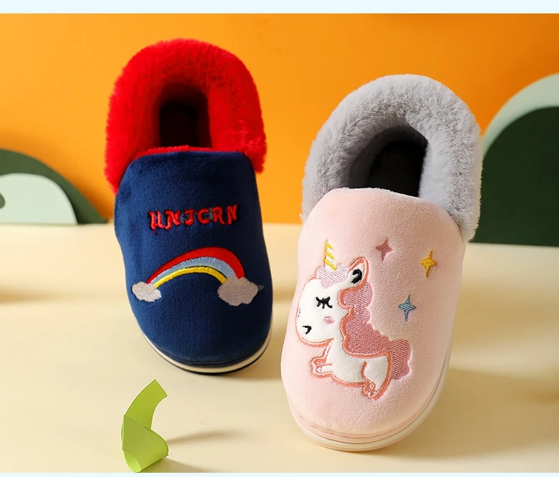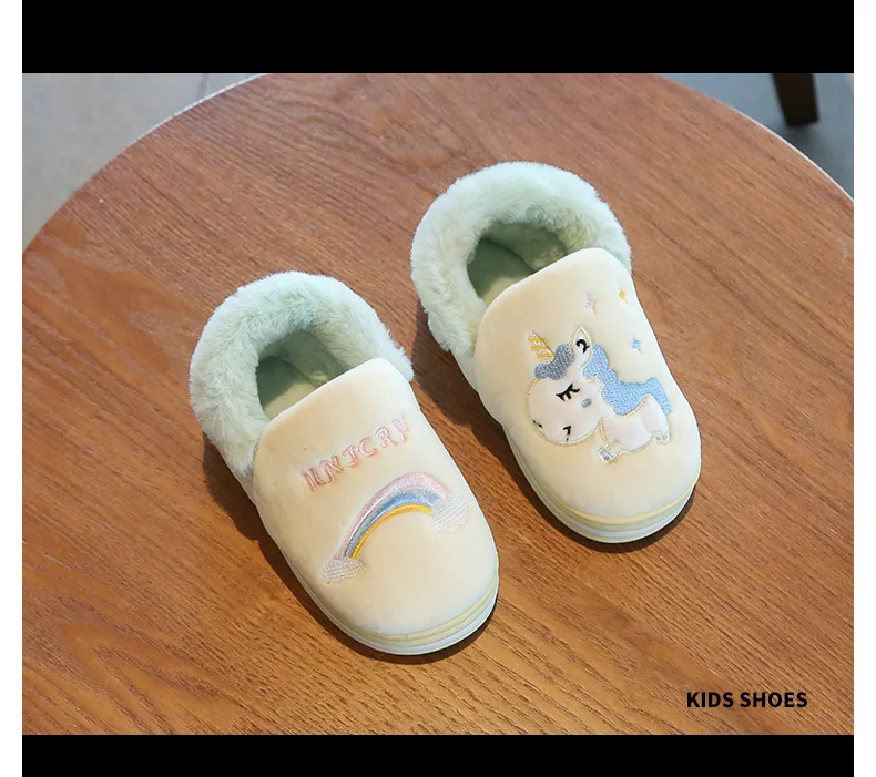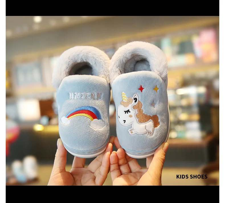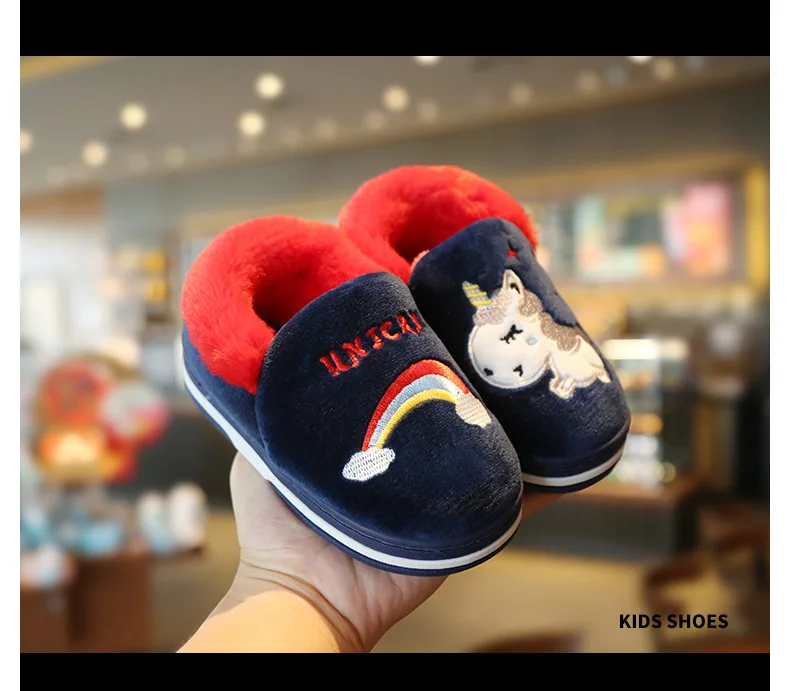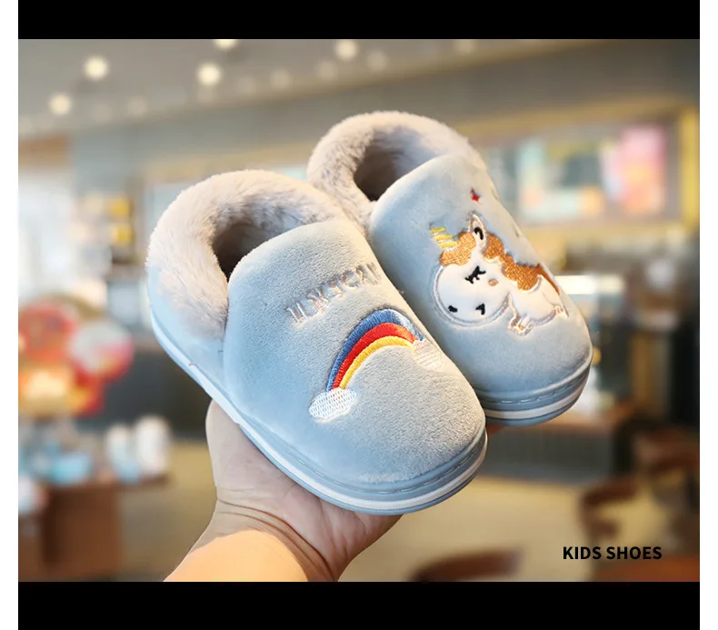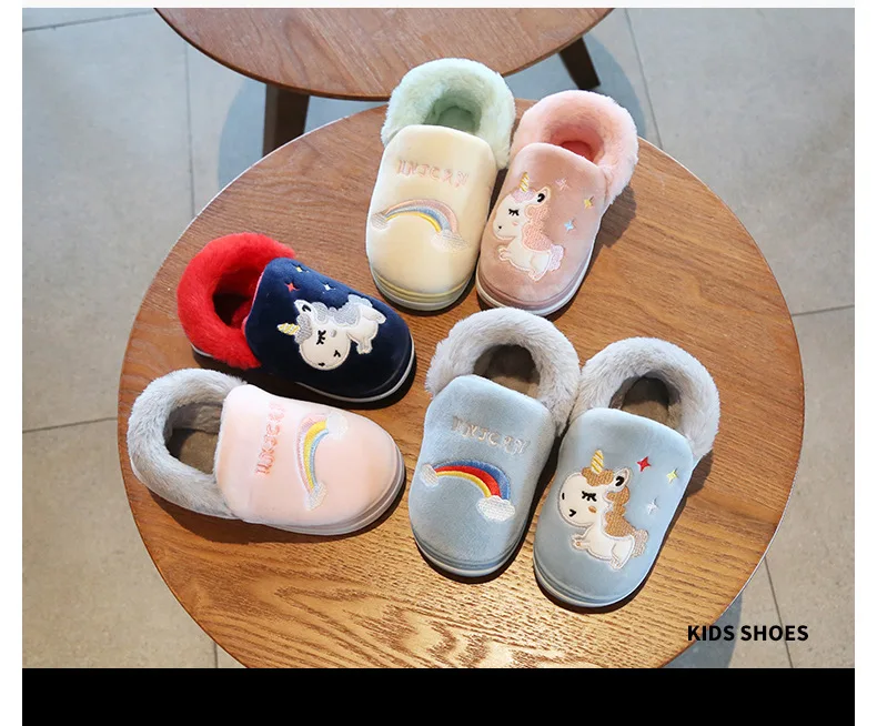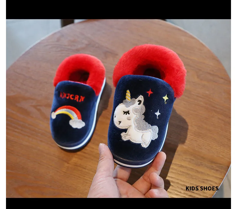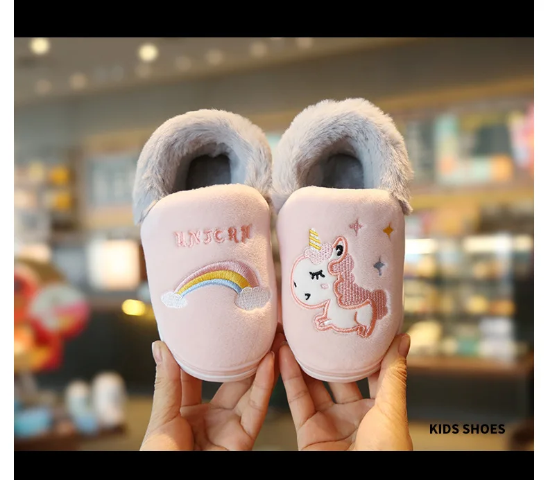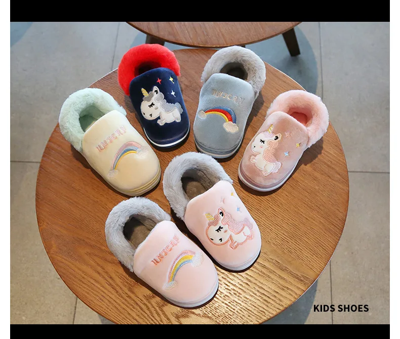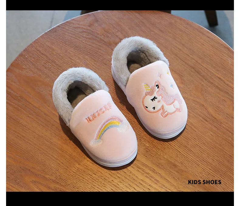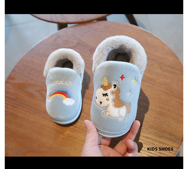 Милая обувь с единорогом из мультфильма радуги, новинка осень-зима 2019, Детская Хлопковая обувь, домашняя нескользящая Мягкая обувь для маленьких мальчиков и девочек