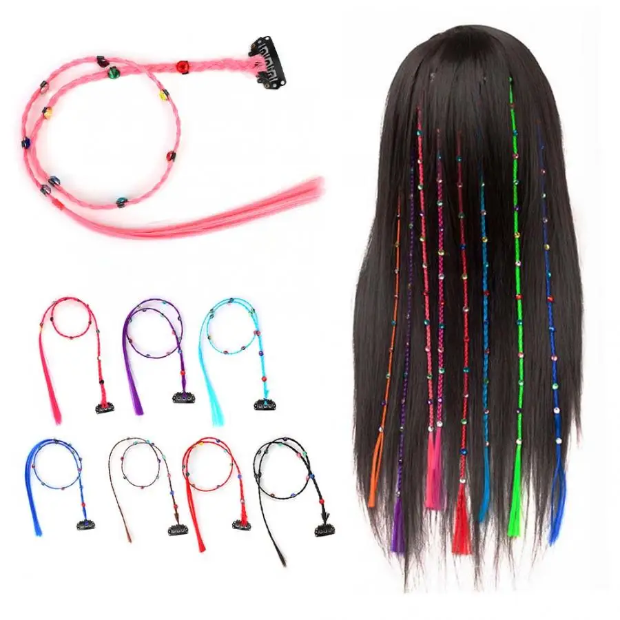 Цветной манекен головы косы бесследные накладные волосы манекен головы волосы кусок блестящие волосы наращивание синтетические резинки для волос Принцесса аксессуары для волос