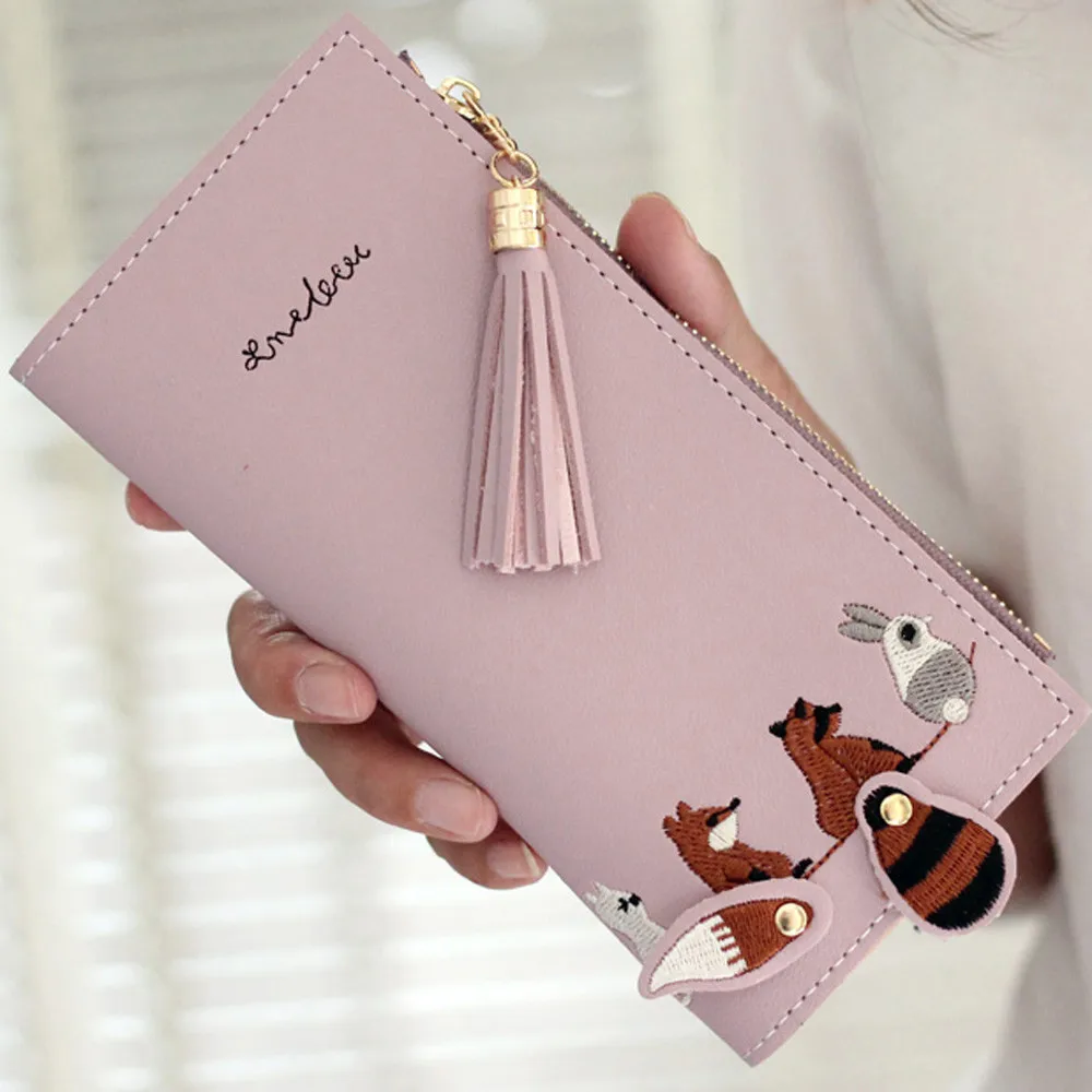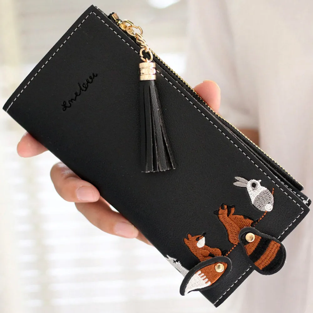 Женский Длинный кошелек с лисой кошкой, кошелек с кисточками для монет, визитница, сумка, посылка
