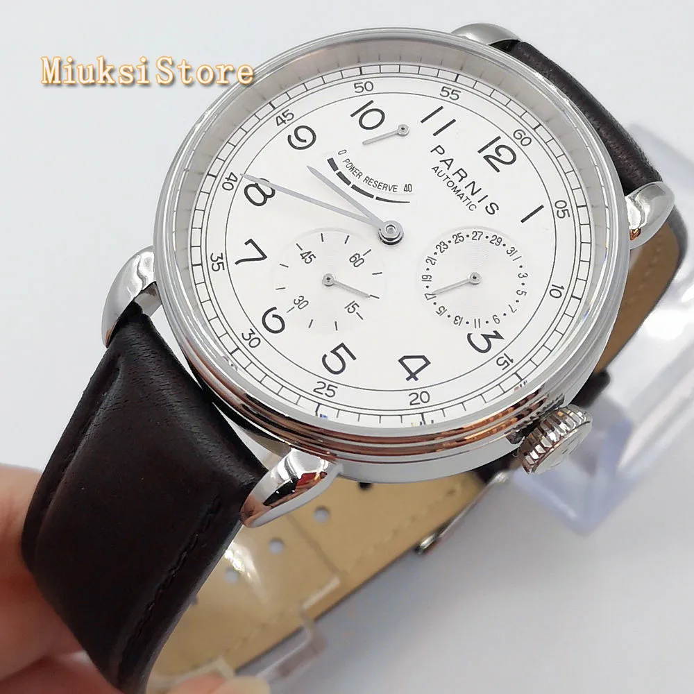 Parnis 42 мм Серебристый футляр для часов ДАТА кожа автоматическое движение Мужские Роскошные Механические часы