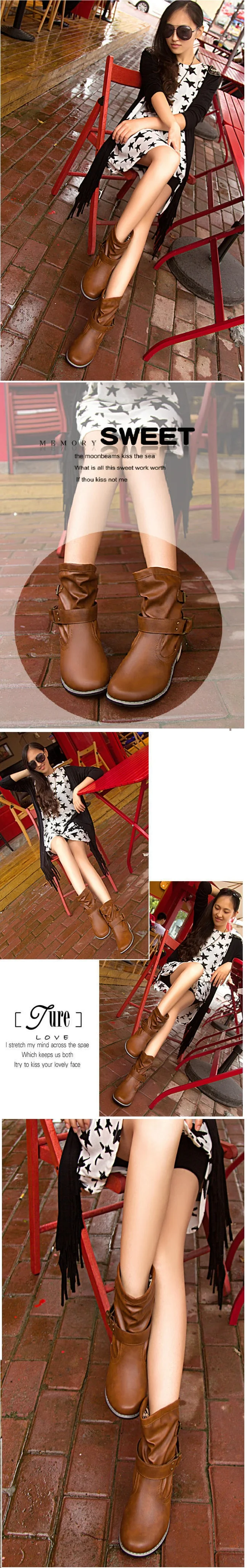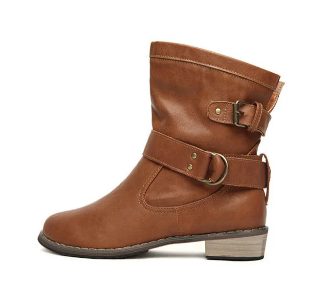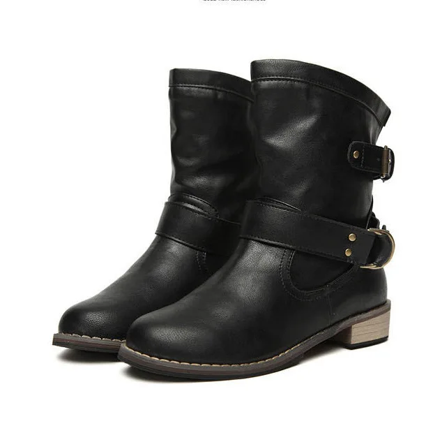 Осенне-зимние сапоги женская обувь женские ботильоны с пряжкой зимние сапоги-гладиаторы из искусственной кожи на низком каблуке Женская обувь, большие размеры 35-41