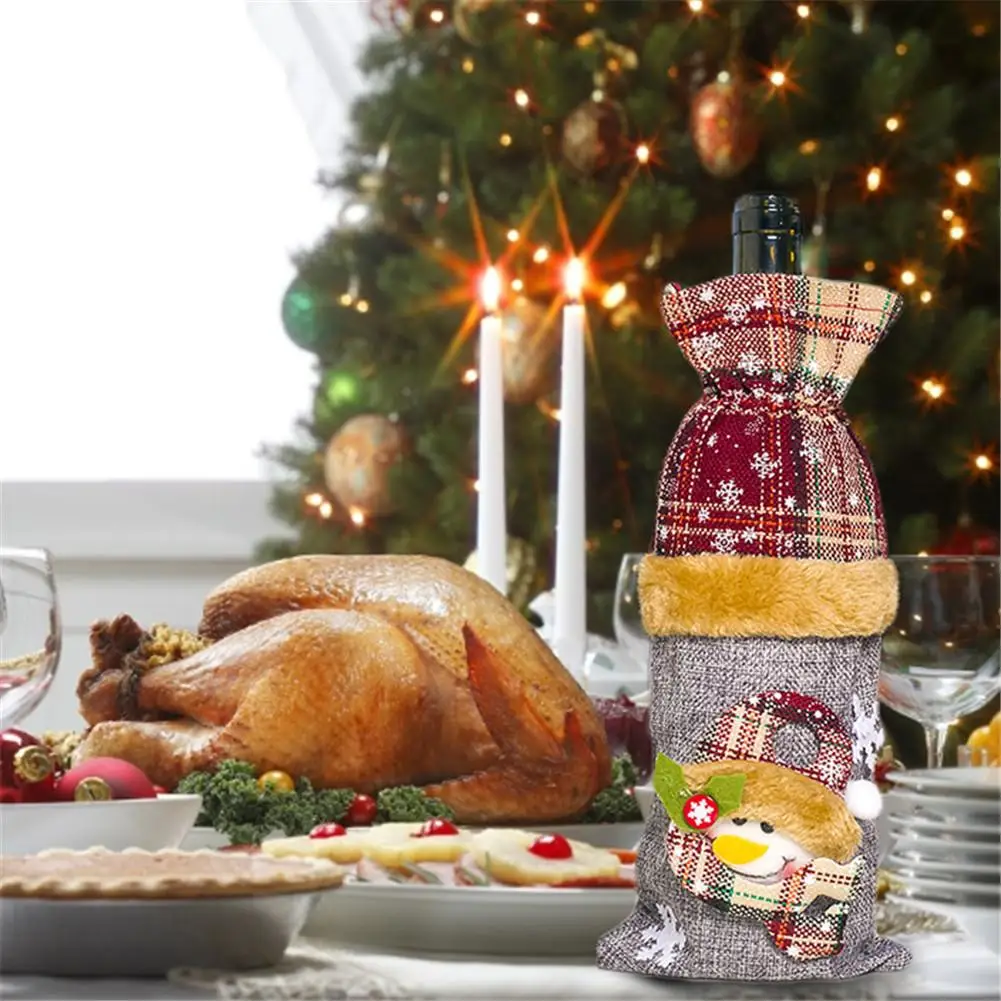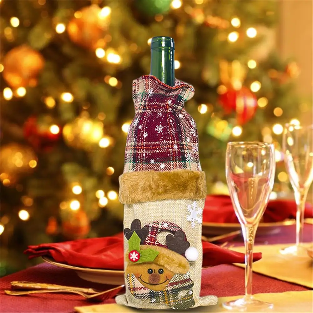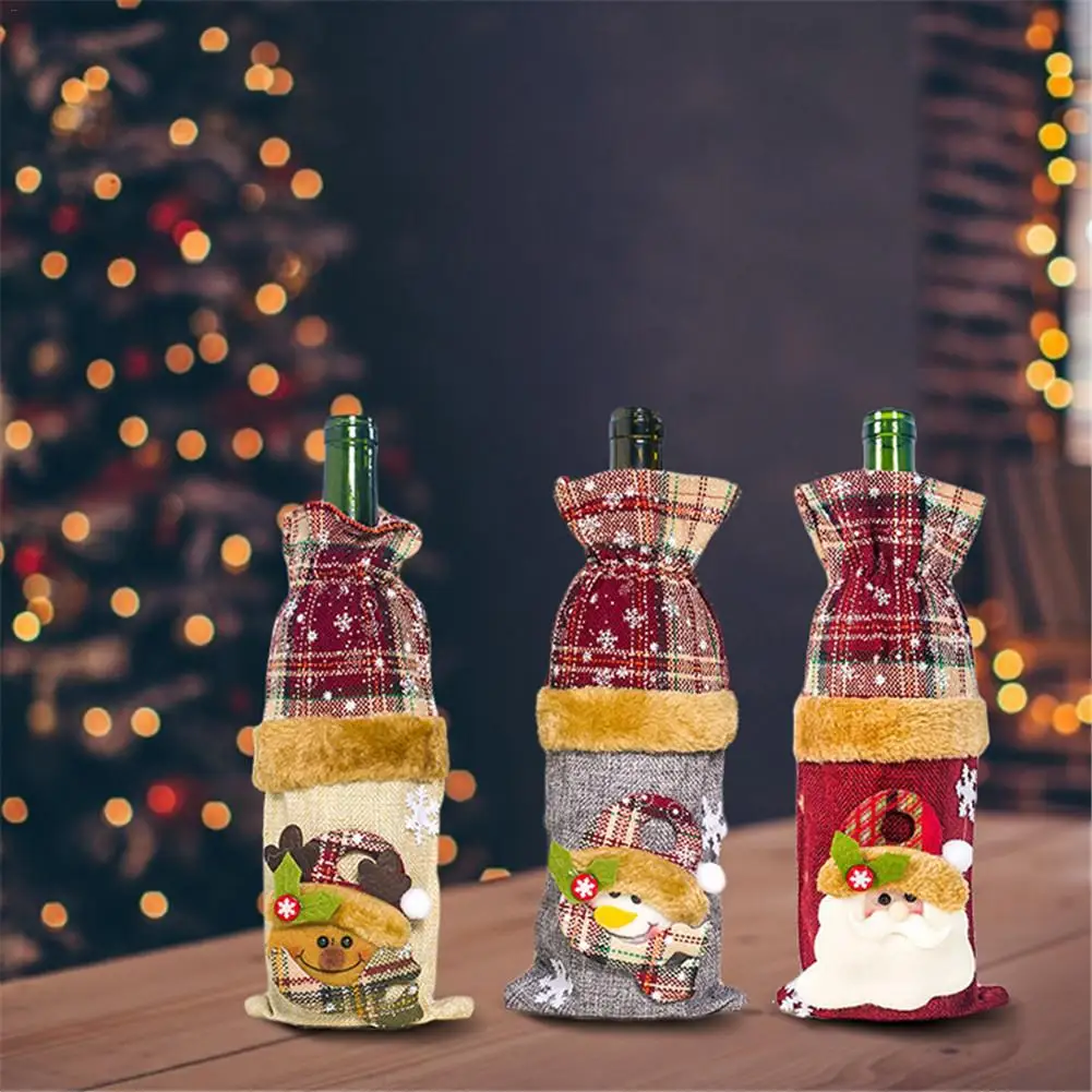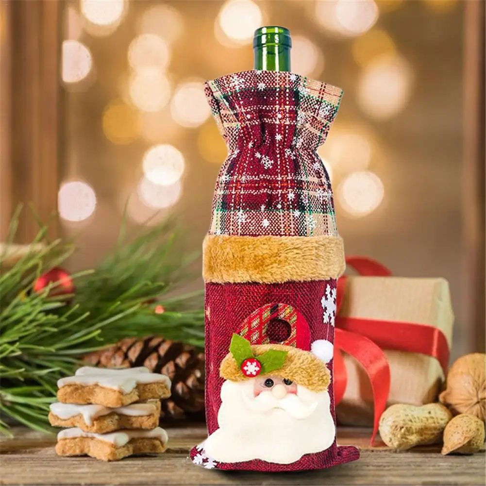 Рождественская бутылка для вина льняная Снежная Санта Клаус Снеговик бутылка для вина Новогодний подарок для вечерние украшения для обеденного стола