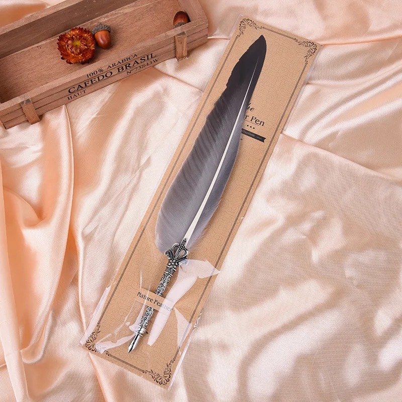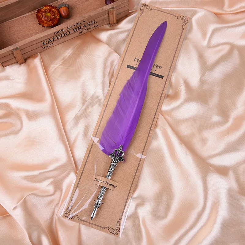 Specifications: * This is a dip pen, made of natural feather and alloy, elegant, antique, and unique. * Smooth writing, wear-resistant, and not easy to damage. * Lightweight, very comfortable to hold, very handy to practice calligraphy with it. * Item Name: Feather Dip Fountain Pen * Material: Alloy + Feather * Features: Quill Dip Pen, Smooth Writing, Gift