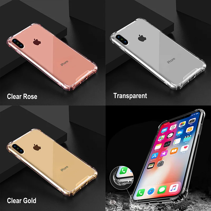 Роскошный Прозрачный ударопрочный мобильный телефон чехол для iPhone X XR XS Max 8 7 6 6S Plus 10 мягкий ТПУ Прозрачный Бампер защитный чехол