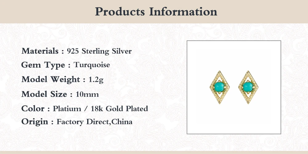 Характеристика 【Brand】: ROXI [Тип товара]: женские маленькие серьги-гвоздики с бриллиантами и бирюзовым камнем 【Основной камень 】: бирюзовый камень 【Meterial】:925 пробы серебро 【Плать】: Позолоченное 18K 【Casions】: Вечерние/Свадебные/Подарочные/повседневные/юбилейные/свидания 【Supply】: поставка; Прямая поставка; Оптовая продажа; Розничная торговля Фактический полученный продукт будет меньше, чем Карта сайта, пожалуйста, поймите