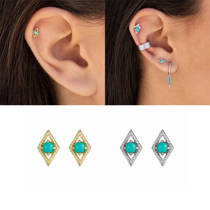 Женские серьги-гвоздики ROXI, Винтажные серьги из стерлингового серебра 925 пробы с бирюзовым камнем, классические серьги для пирсинга