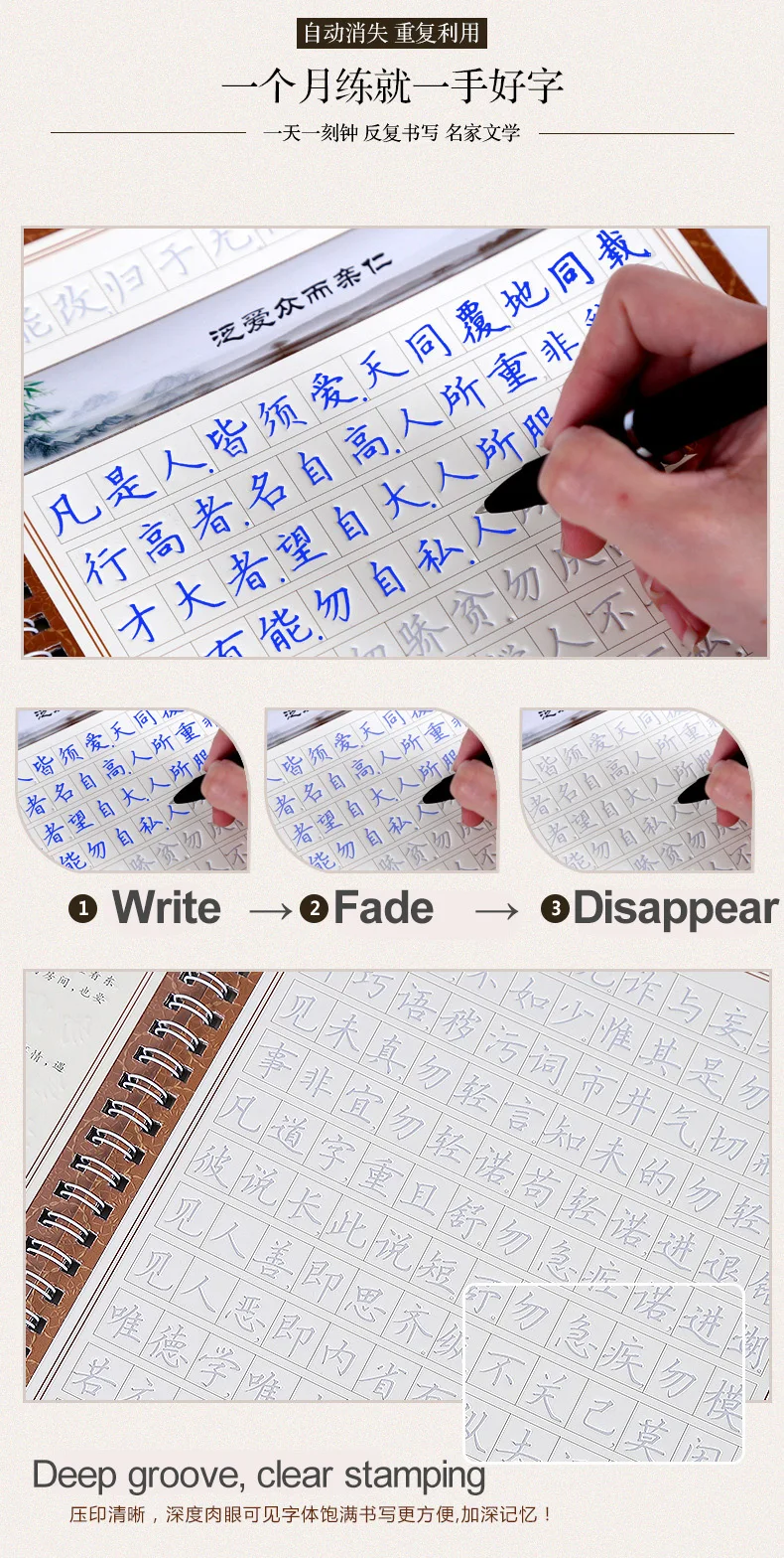 4 шт./компл. тетрадь для практики взрослых для школы Groove китайские упражнения для начинающих Известные цитаты копирайтер 3D Groove можно использовать повторно