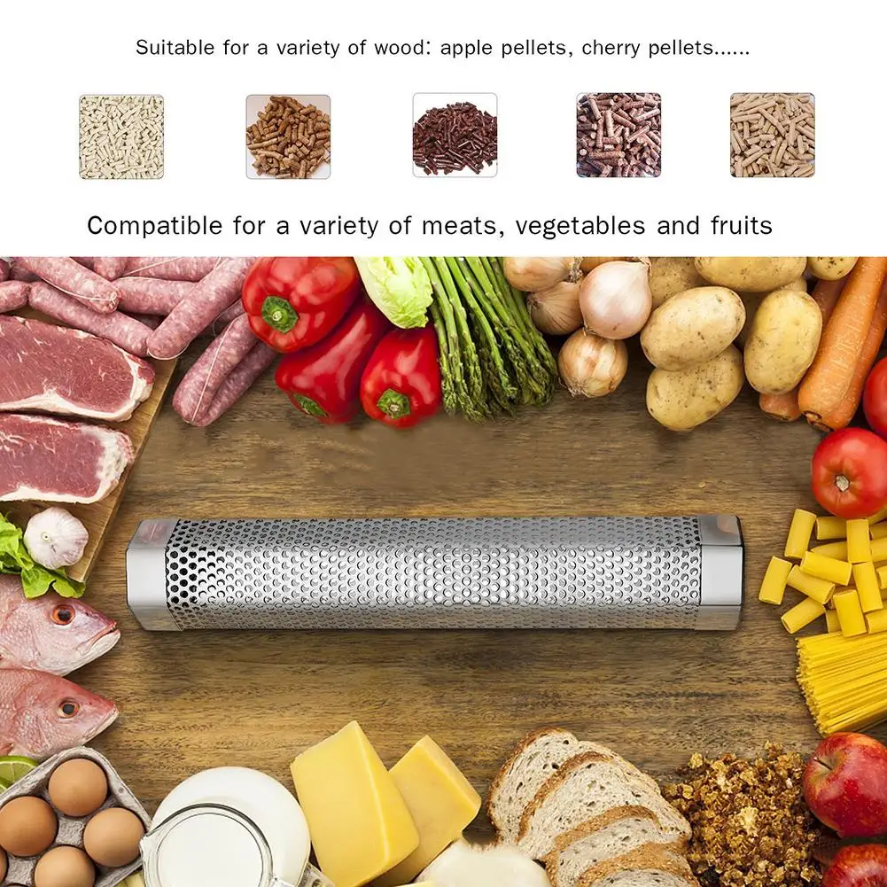Курительная труба изготовлена из нержавеющей стали, которая является безопасной и прочной и легко моется.Подходит для барбекю и курения (газовый, электрический или древесный уголь), придает вашему мясу или рыбе богатый вкус и придает им знойный деревянный вкус.Курительные трубы могут производить дым до 5 часов курения, идеально подходит для горячей и холодной свинины, свиных ребрышек, мяса, хот-догов, колбас, курицы, сыра, ягненка, рыбы, орехи, фрукты, кукуруза, бекон и многое другое.Шестиугольная форма помогает эффективно распределить дым, поэтому она даст вам лучший эффект курения. В отличие от традиционных курильщиков из рулона, эта шестиугольная форма остается на месте, чтобы обеспечить сбалансированное курение.Это простой в использовании метод, который позволяет легко добавлять смелые дымчатые ароматы к любой еде. Параметры: