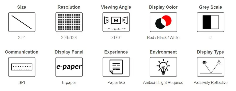 Это необработанный дисплей, для облегчения тестирования и сравнения обратите внимание на дисплей с платой драйвера: 2,9-дюймовый модуль электронной бумаги (B)