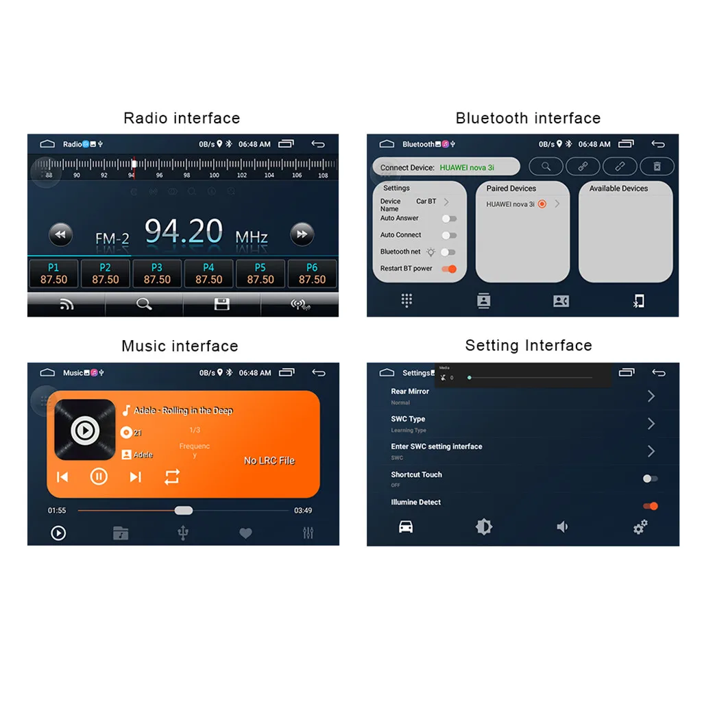 Радио FM Чтение U диска (аудио/видео Видео/фото/) Функция AUX Функцией Bluetooth Аудиовыход RCA может быть Подключен к сабвуфер Функция заднего вида (камера Опционально) Видео вход Рулевого колеса автомобиля Колесо данную функцию Android рекордер может быть Установлен WI-FI Интернет доступа GPS навигации Мобильный Интернет (Android/ IOS) Устанавливаемый приложение Rca-клеммное Введение: 2 канала аудиовыхода, 2 канала аудиовхода, 2 канала видео Вход, 1 канал заднего хода, 1 канал видеовыходаТехнические характеристики: