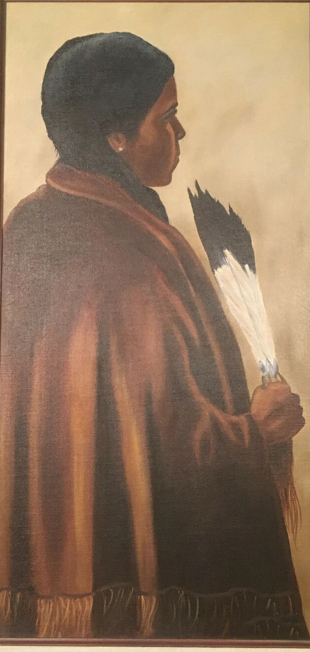 Старый художник, ручная роспись на холсте: примитивные европейские и американские жители, местная девушка держит перо вентилятор