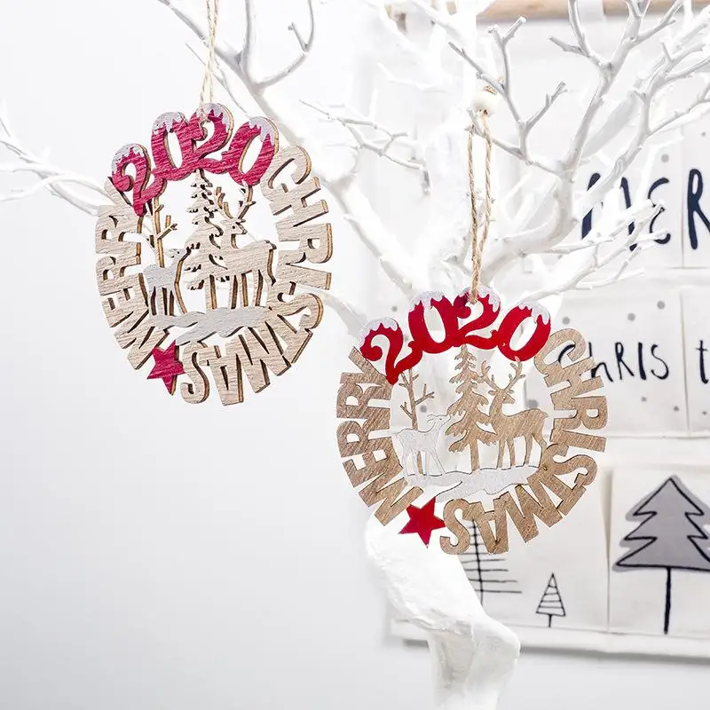 Деревянные полые 2020 с рождественской надписью подвесные украшения для дома для окна двери настенные украшения упаковка из 2шт ZB203