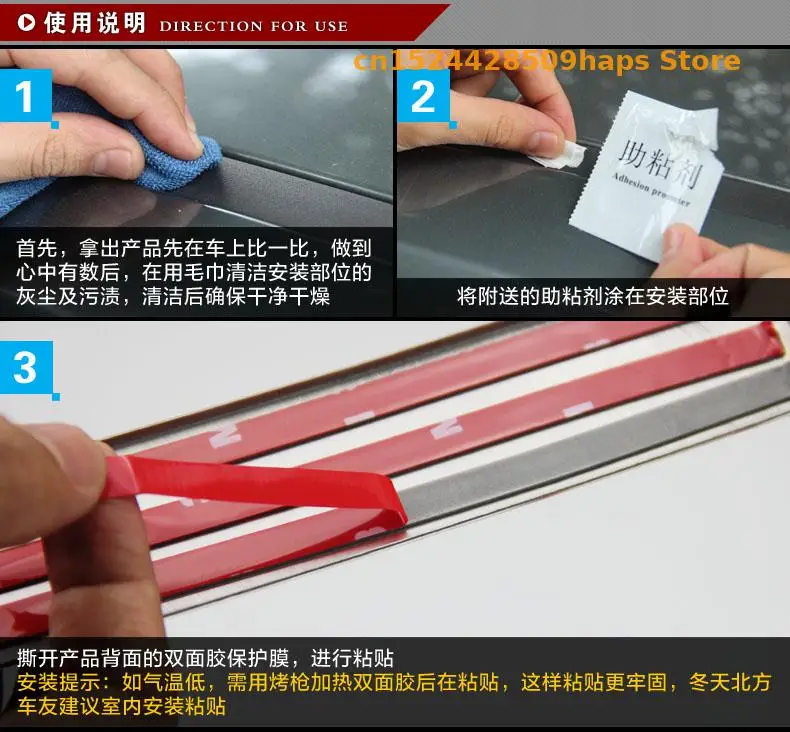Простая установка, клейкая лента сзади. Пожалуйста, обратите внимание, что перед установкой Используйте тепловой пистолет, чтобы согреть клейкую ленту, чтобы сделать изделие наклеенным