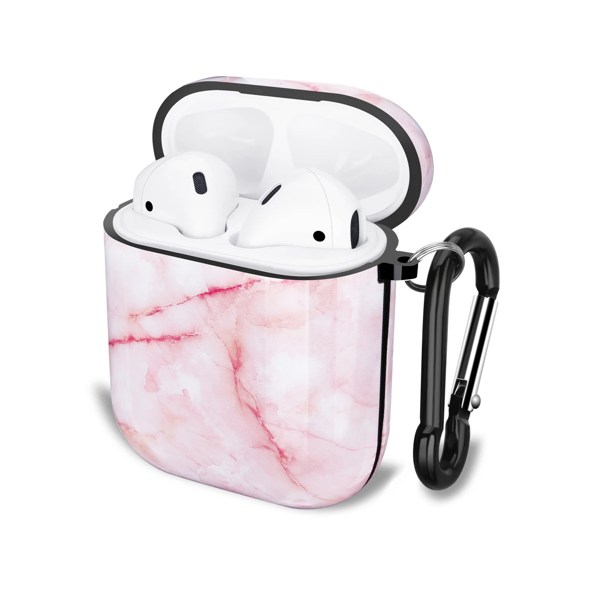 Netarlier, беспроводной Чехол для наушников с Bluetooth для Apple AirPods 1 2, милый розовый мраморный ТПУ мягкий глянцевый защитный IMD чехол с крючком
