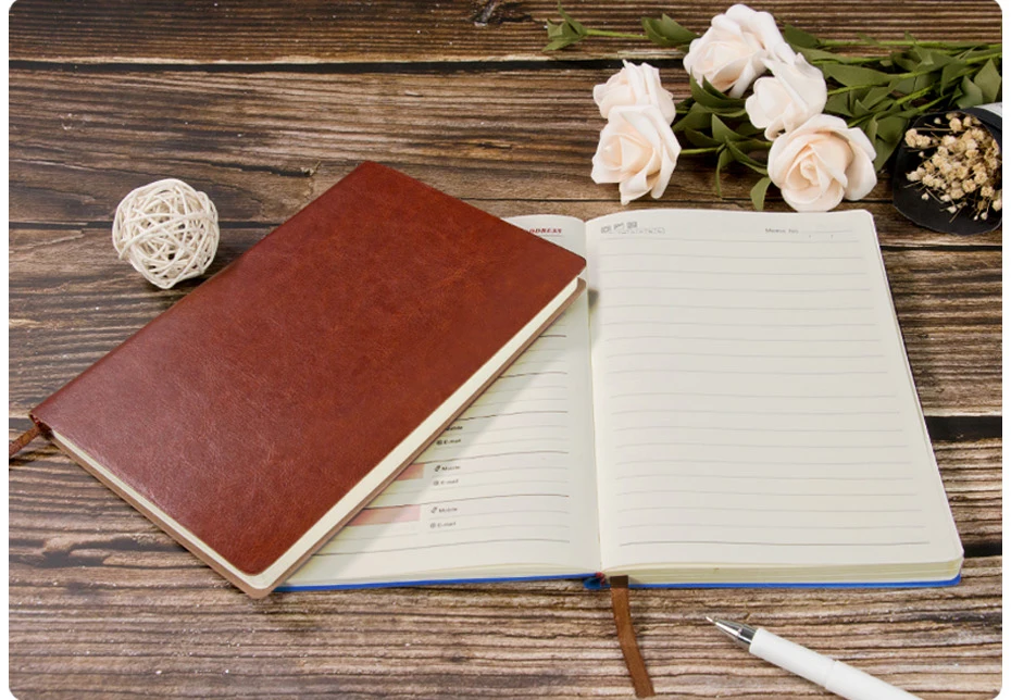 Название продукта: A5 из мягкой кожи для ноутбука Материал чехла: овчина Материал бумаги: бумага для защиты глаз без дерева Размер изделия: A5 (21,2*14,7 см) Вес: 250 г Количество листов: 100 листов Расстояние между линиями: 8 мм Цвет: красный, синий