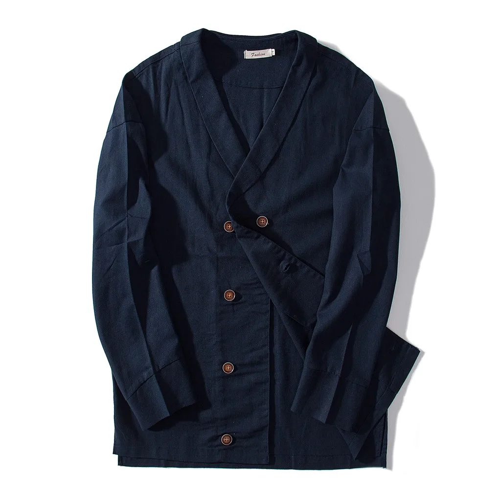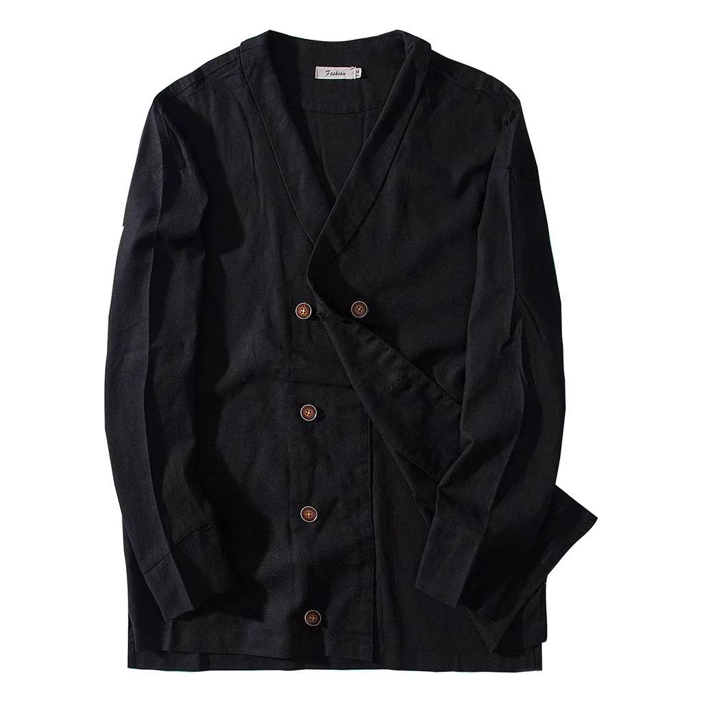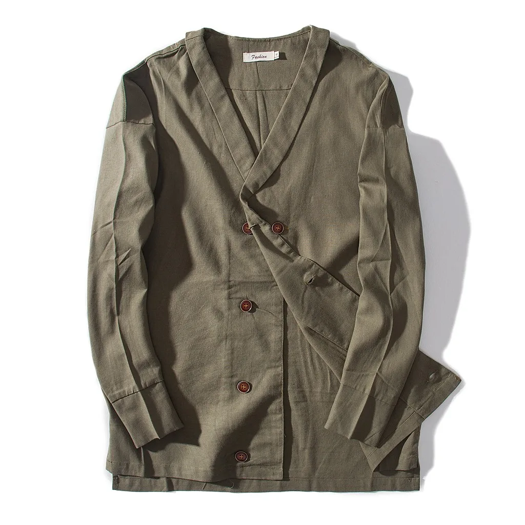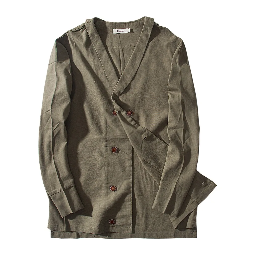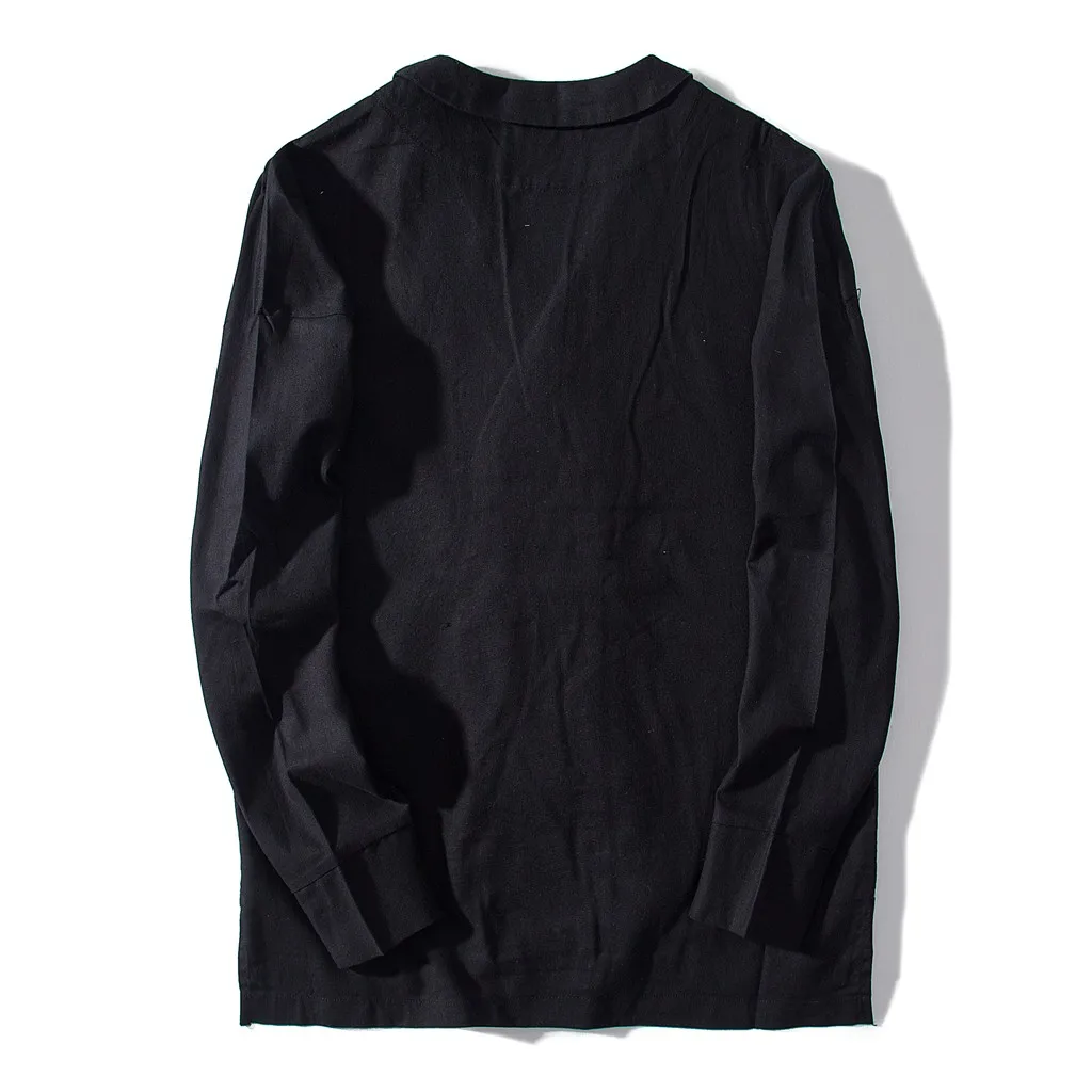 Модное мужское хлопковое белье сплошной цвет рубашка с длинными рукавами Топы на пуговицах Блузка пальто