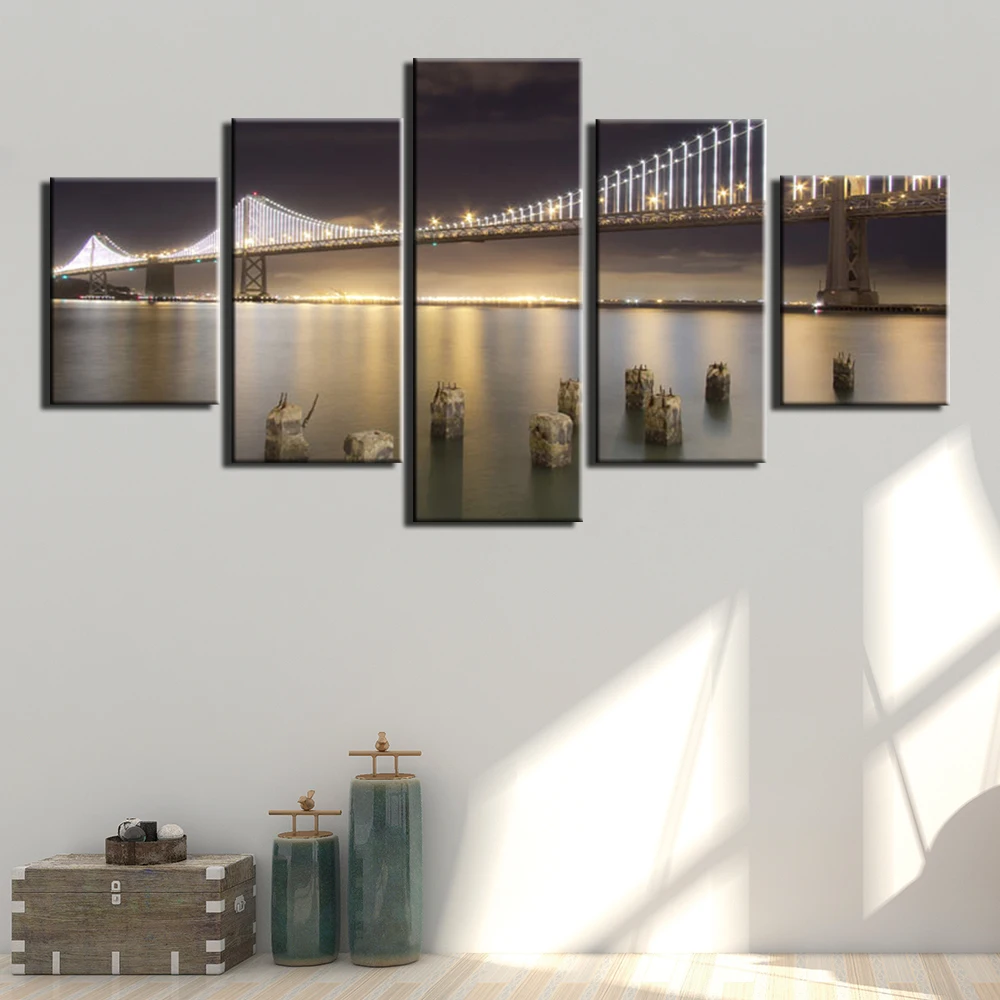 Modname = ckeditorКартина на холсте, 5 шт., печать и постеры, домашний декор, искусство, городской мост, настенные картины для гостиной