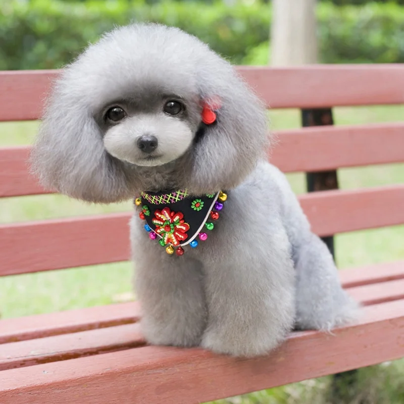 Аксессуары для ухода за домашними животными миноритарный стиль шеи Бандана ошейник с колокольчиками цветной цветок шарф