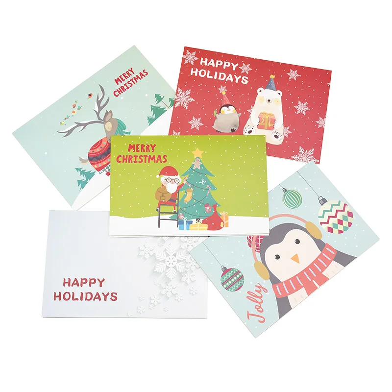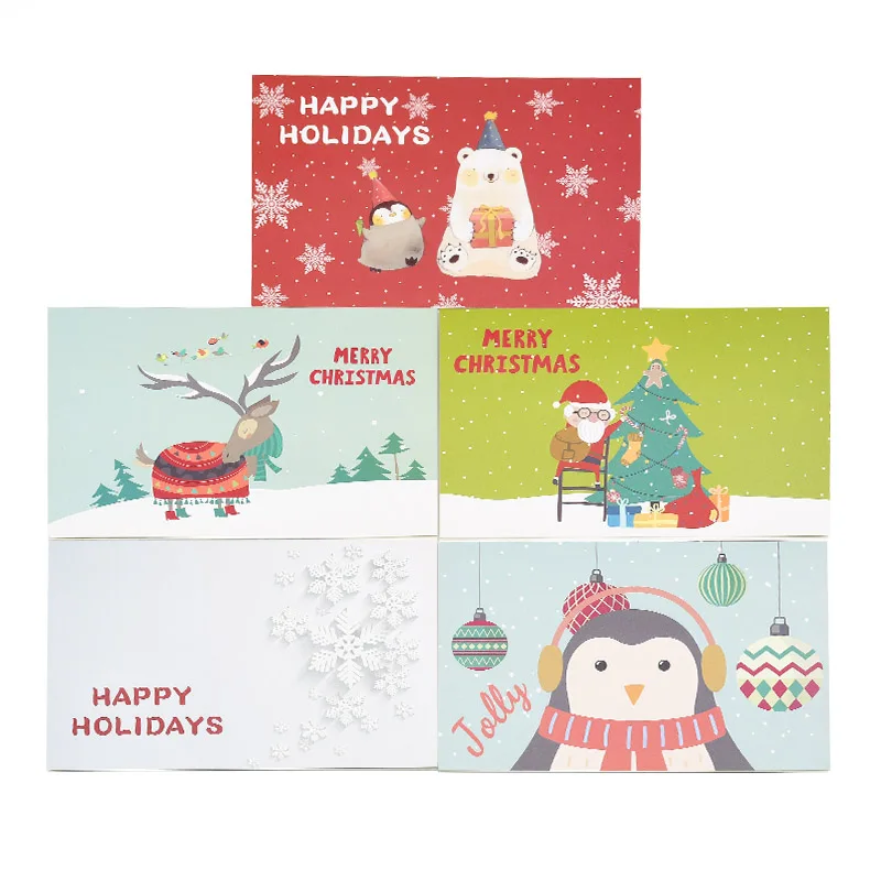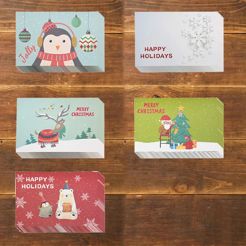 2 шт счастливый праздник Счастливого Рождества печать поздравительная открытка, чтобы поздороваться друг семьи Новогодние рождественские подарки DIY поделки из бумаги ручной работы
