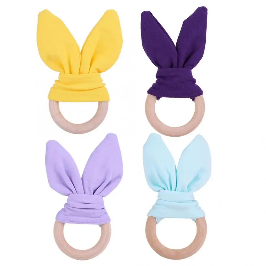 Для детей, из натурального дерева, Прорезыватель для зубов Банни детское зубное кольцо Очаровательные кроличьи уши игрушка