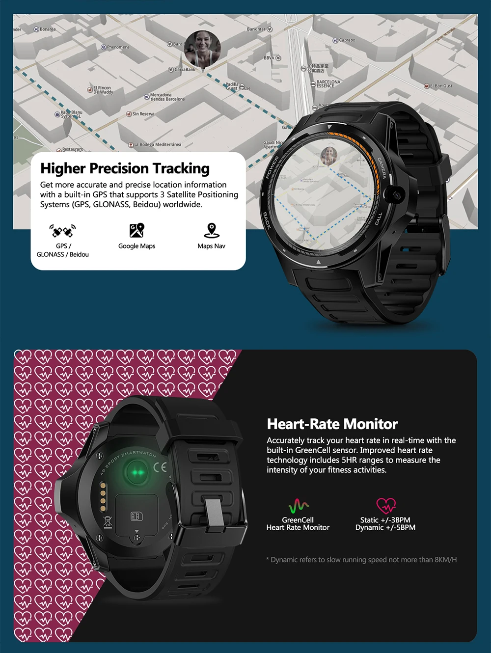 Функции: умные часы имеют Google Play, голосовой поиск, автономную музыку, Wi-Fi, погоду, браузер, календарь, камеру, электронные книги, MP3, MP4, монитор сердечного ритма, шагомер, напоминание о звонках и т. д.