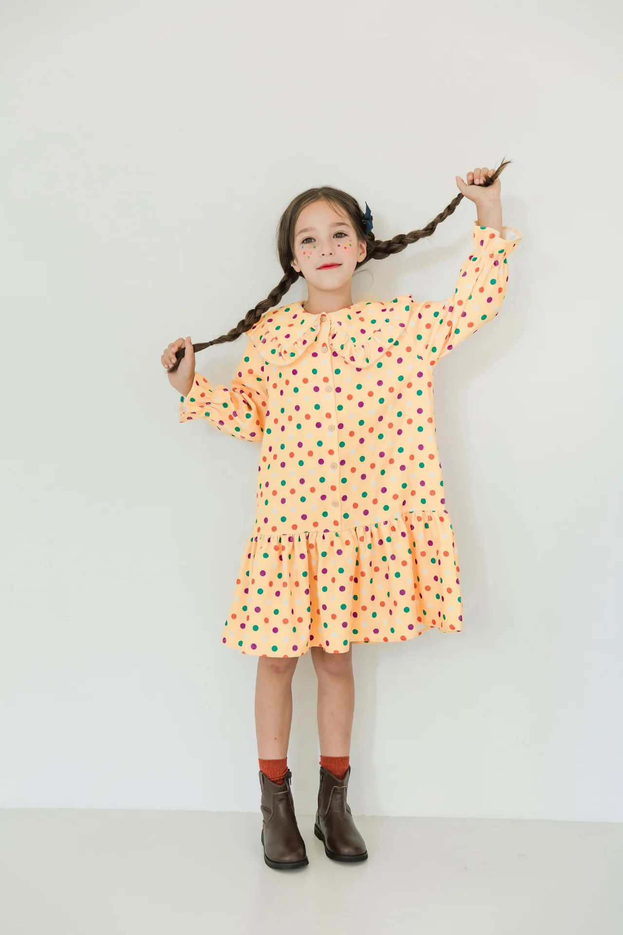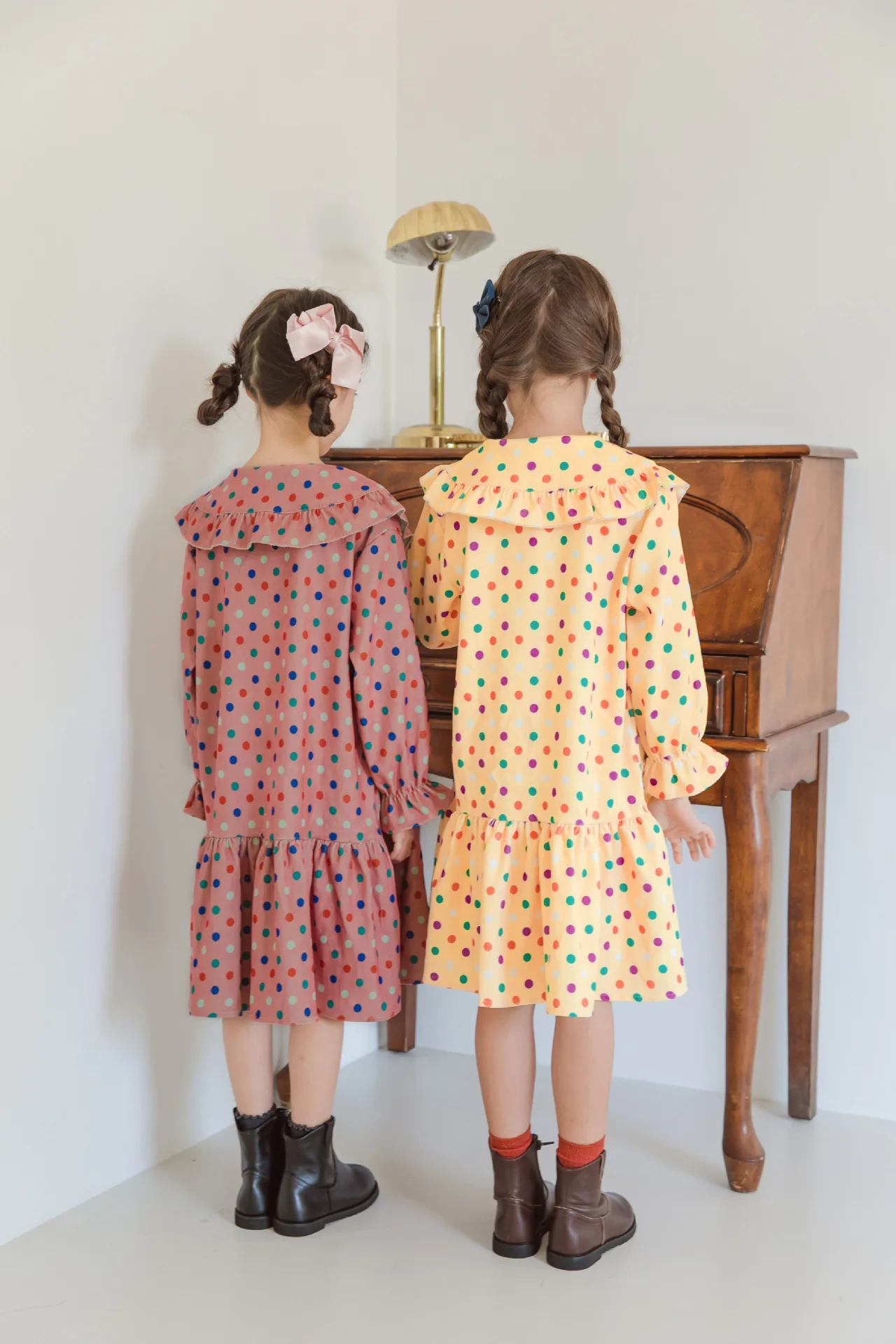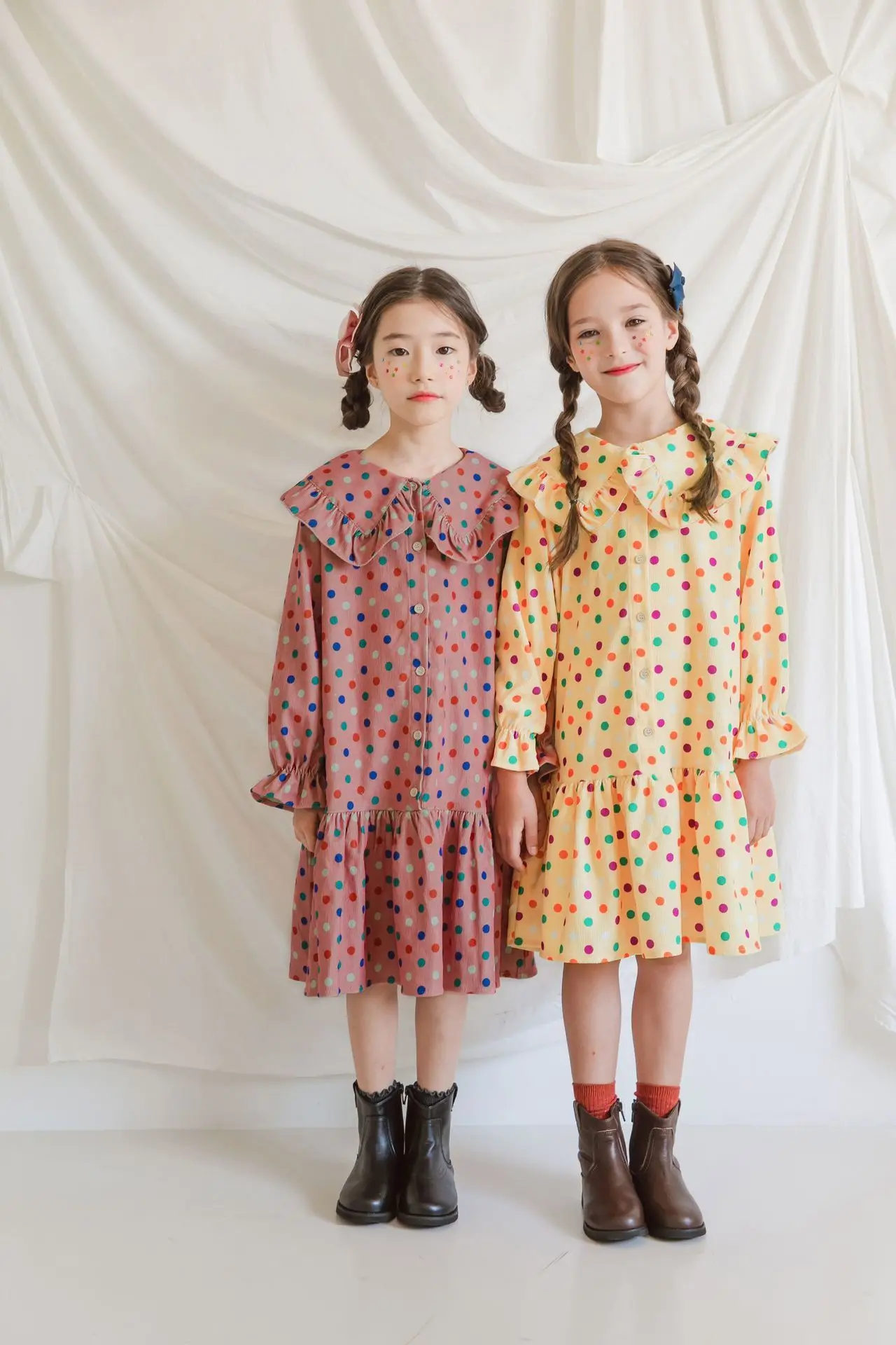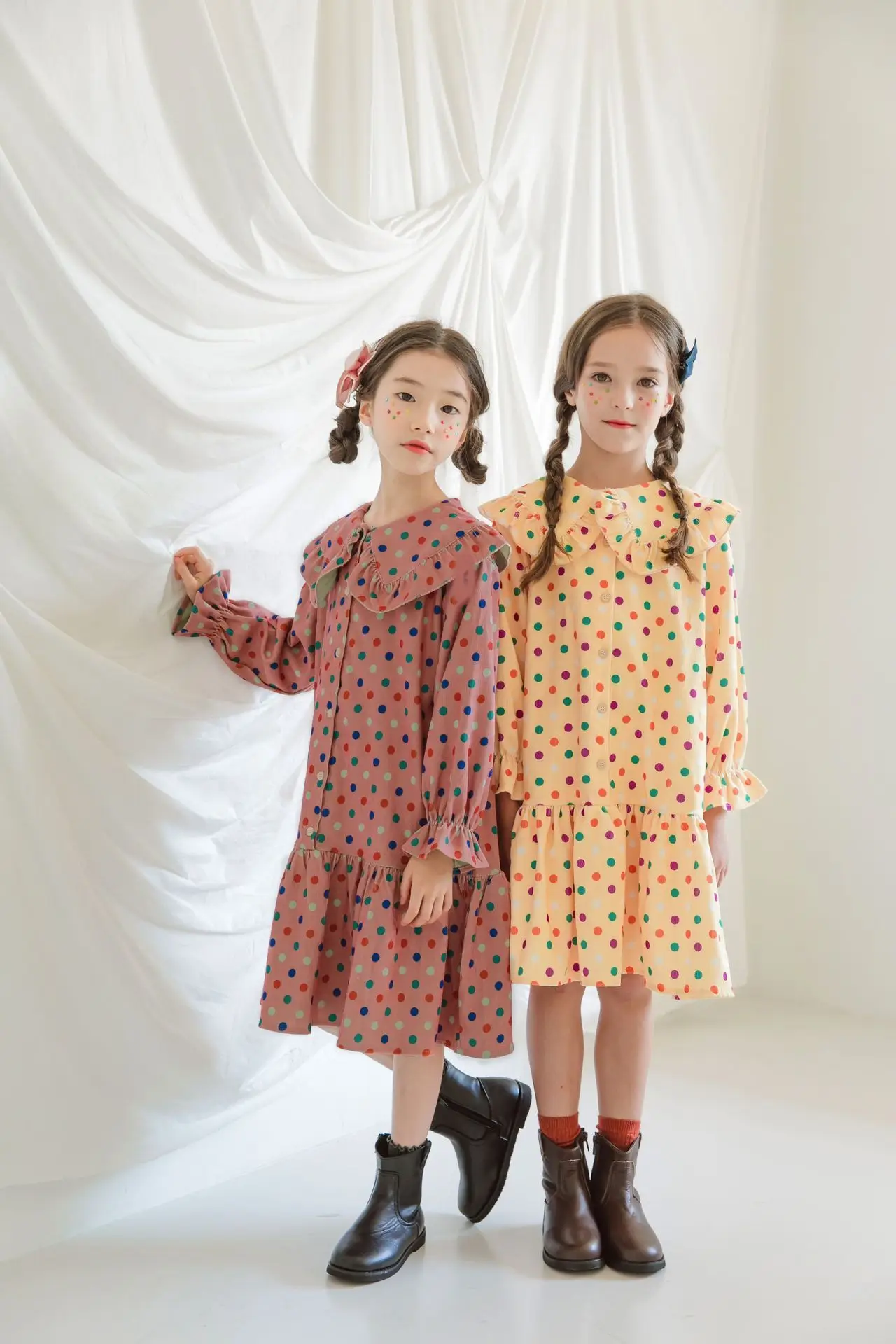 1. Разноцветные платья в горошек с длинными рукавами для девочек, модные