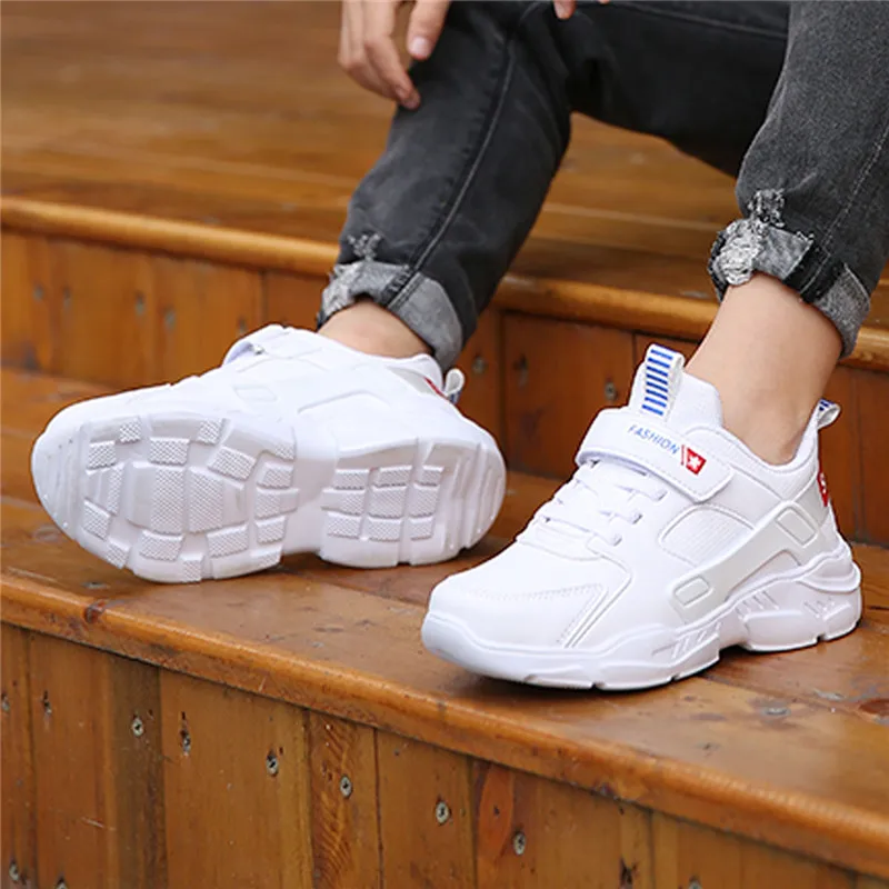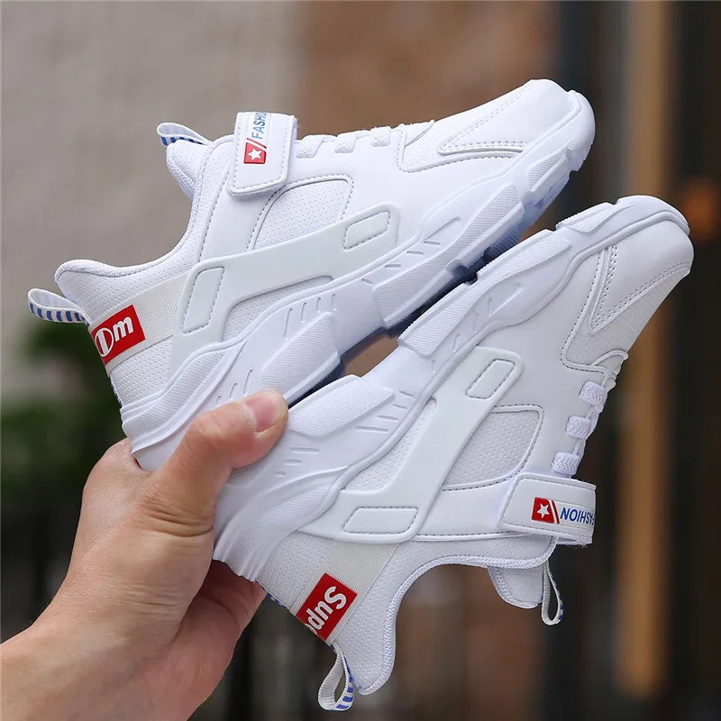 Белые кроссовки для мальчиков; большая детская обувь; дышащая обувь для девочек; детская обувь для бега; сетчатая обувь для студентов; Белая обувь