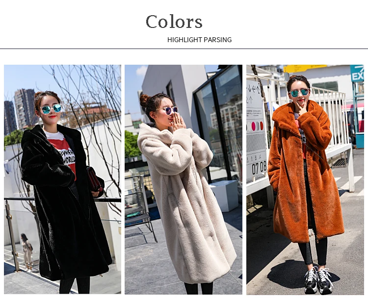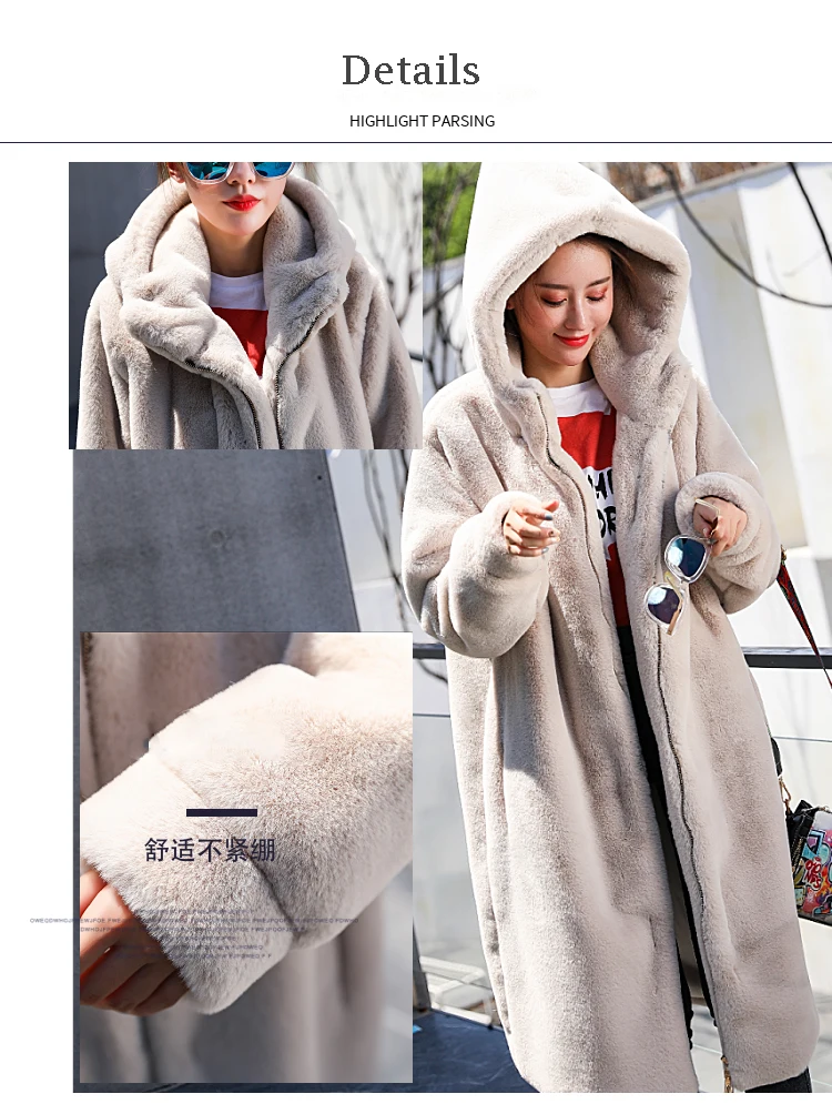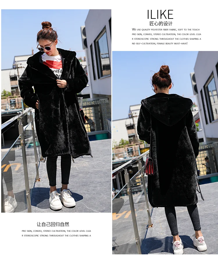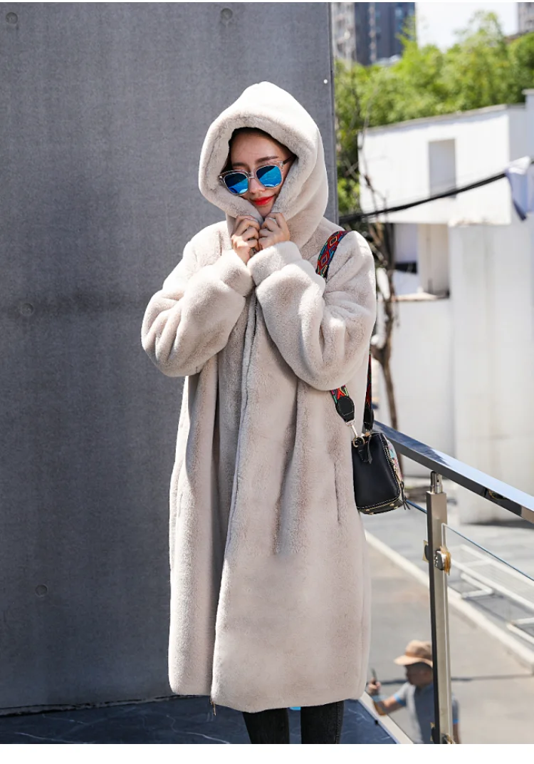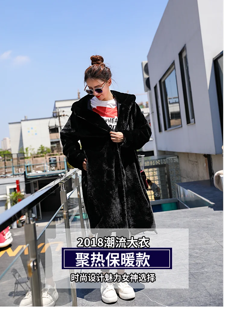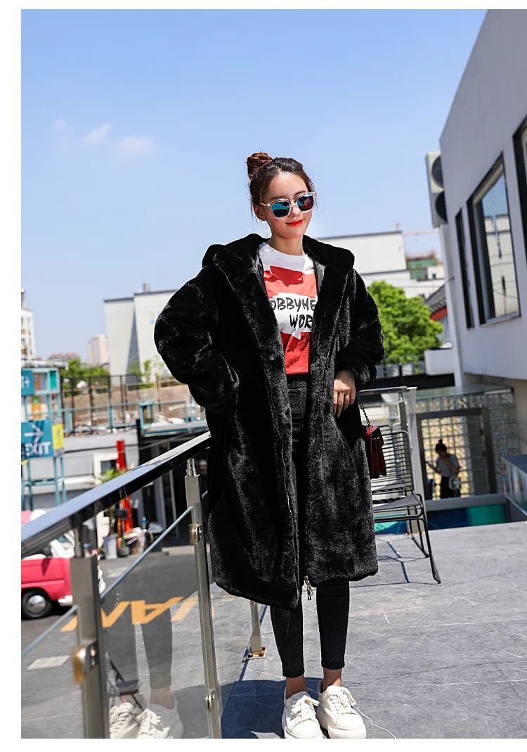 LUZUZI/новое зимнее пальто с капюшоном в Корейском стиле, очень длинное пальто с искусственным мехом, женское утепленное пальто из кроличьего меха, свободное плюшевое пальто, 2019