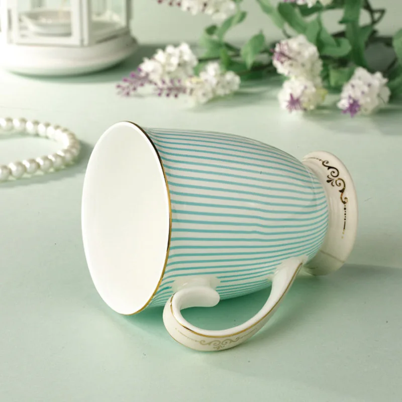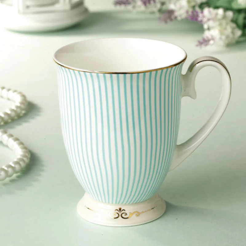 Ceramic Water Cups Creative British Stripe Coffee Mugs Bone China Breakfast Milk Goblet Household Drinkware Gift Porcelain