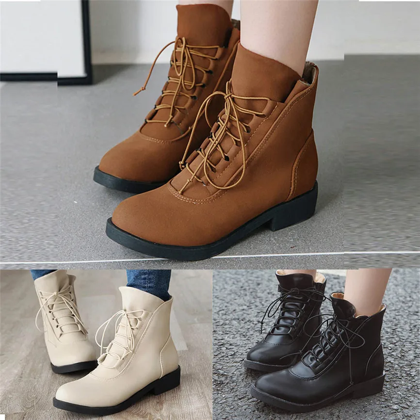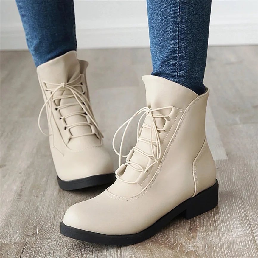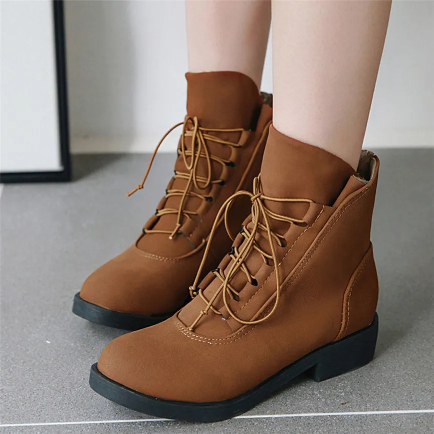 Botines Mujer/большие размеры; женские ботильоны; обувь на квадратном каблуке; повседневные короткие модные ботинки на платформе со шнуровкой; Zapatos Mujer Invierno