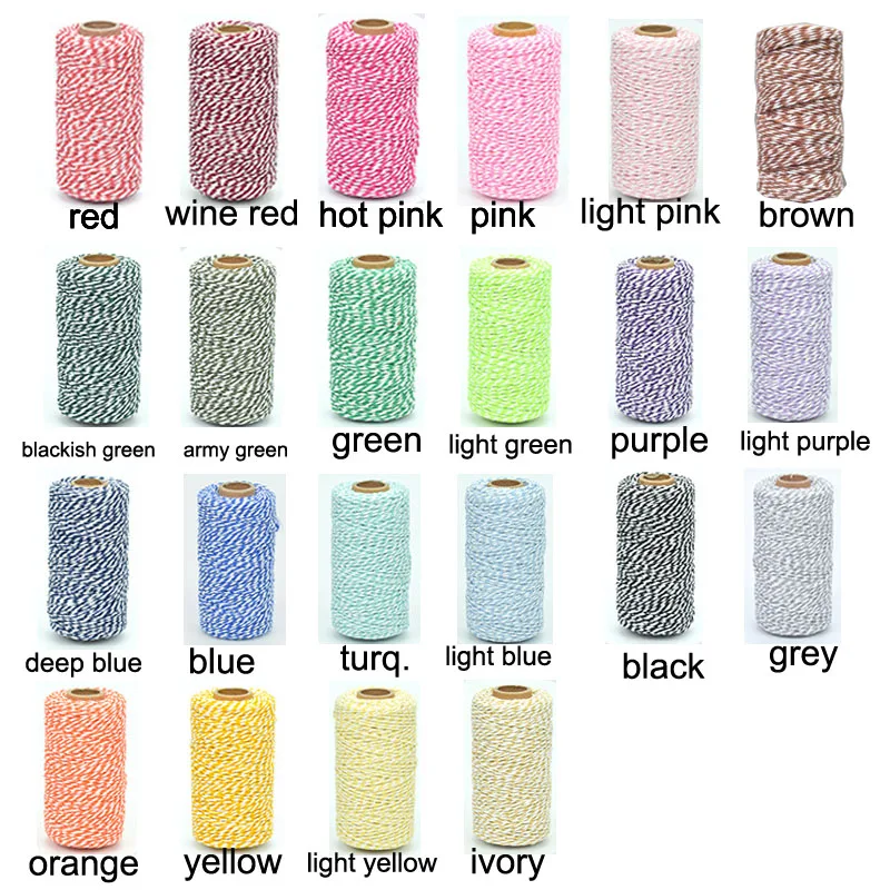 100 м/рулон 2 слой 2 цвета булочных шпагат, веревка ручной хлопковые шнуры подарок цветные нитки вечерние украшения домашнего декора