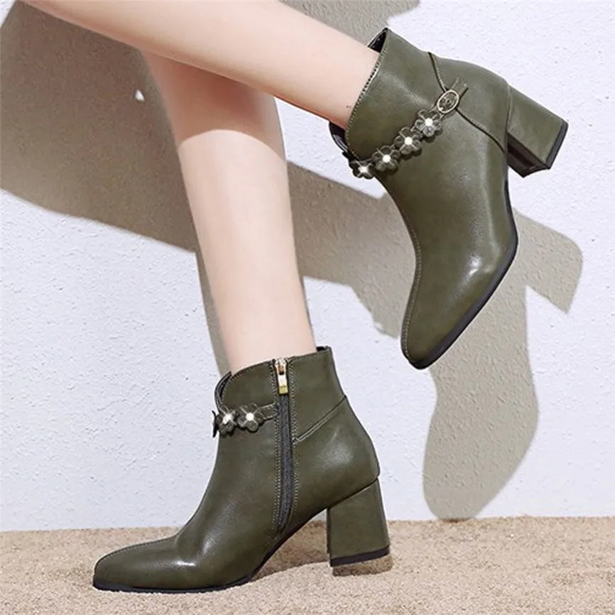Женские короткие ботиночки в британском стиле; ботильоны с цветочным принтом; обувь на высоком каблуке; женские ботильоны с острым носком из яркой кожи на молнии