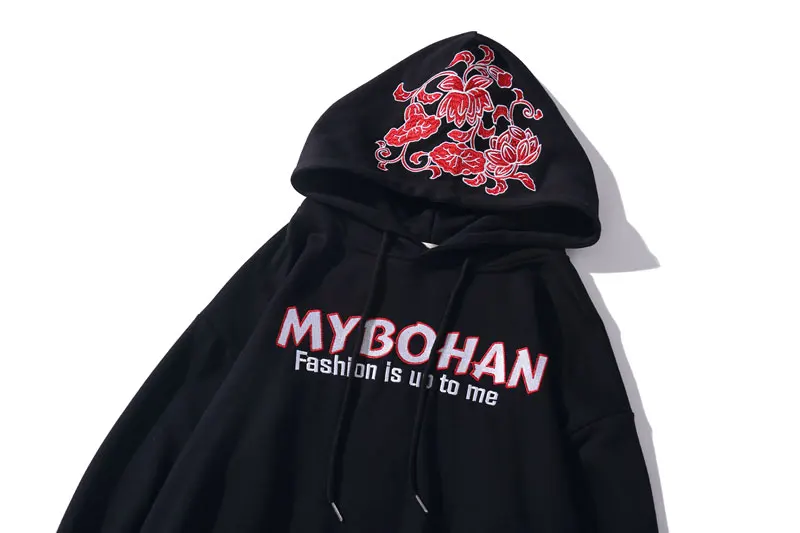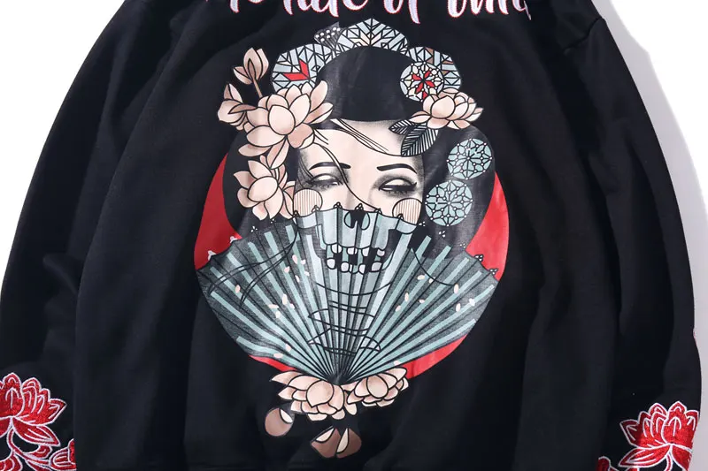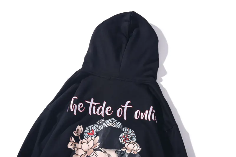 Японский стиль вышитые цветы череп Девушка толстовки с капюшоном рисунком Harajuku пуловер толстовки уличная мужская хип хоп Мода Топы