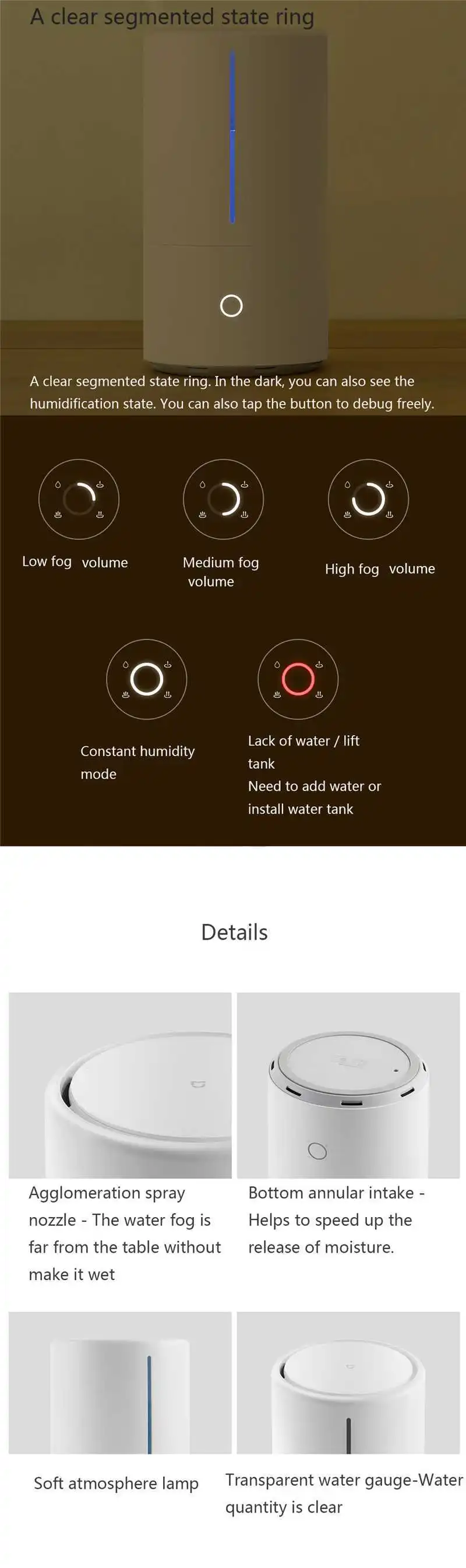 -Четкое сегментированное кольцо. В темноте вы также можете увидеть состояние увлажнения. Вы также можете нажать кнопку, чтобы свободно отлаживать.