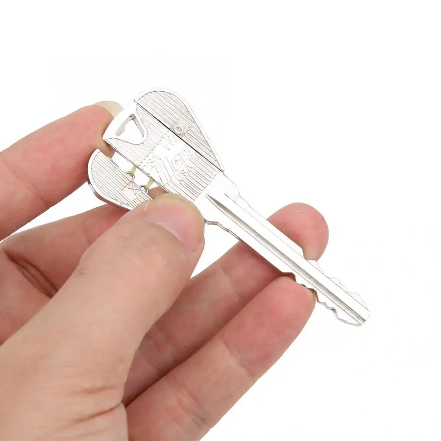 This is a great pair of keys for performing the Key into Bottle trick. It contains two keys: one key is a normal key, the other is identical but is a gimmick so that it folds to fit into a bottle. This key magically turns over in your hand. Can be used with many different themes for performance. Easy to perform, gimmick is really straight forward and very little practice required. Can also be used for other tricks like "Key through ring" where the key penetrates through a ring while it is wrapped in a hanky.